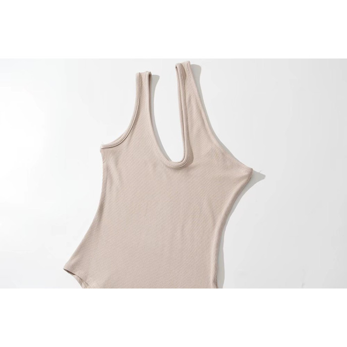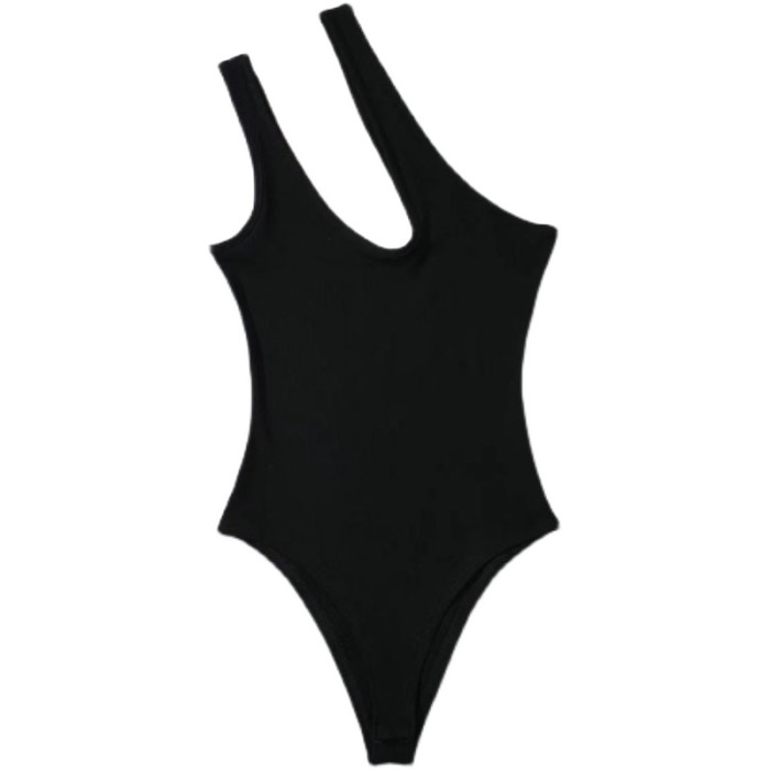 心機不規則斜肩掛脖背心連體衣女內搭外穿純色螺紋吊帶上衣打底衫