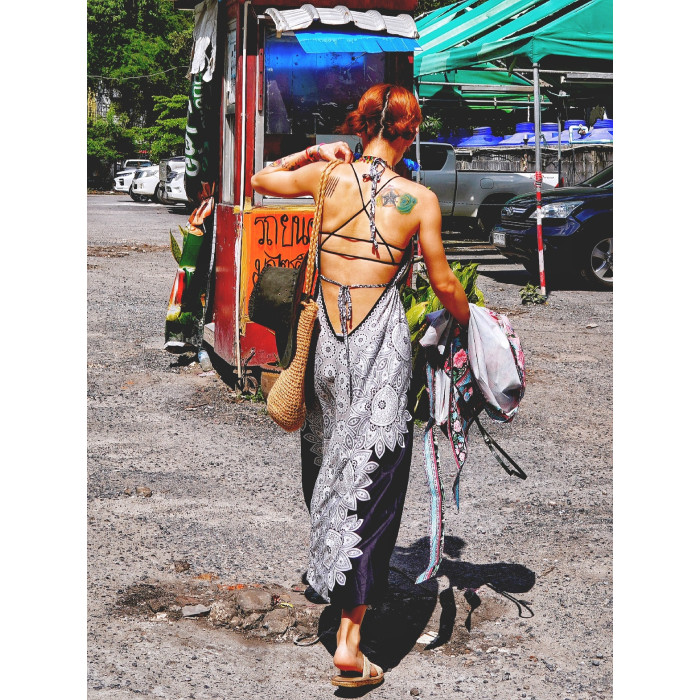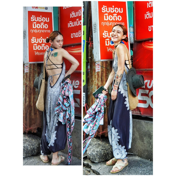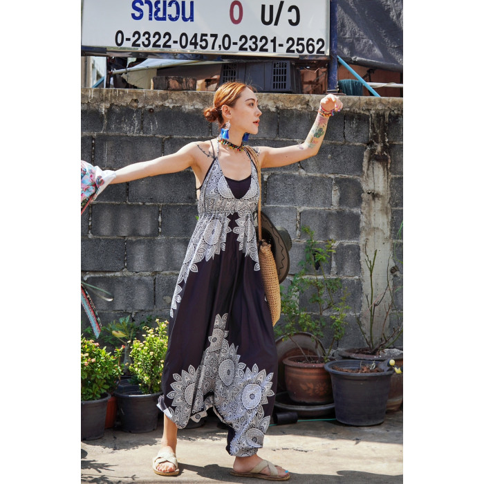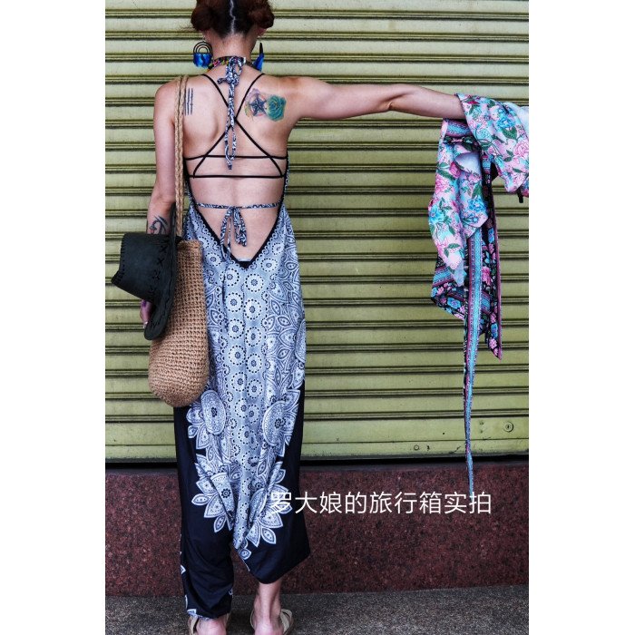 泰國度假露背連體衣褲辣妹波西米亞印度瑜伽襠褲民族風沙灘長褲夏