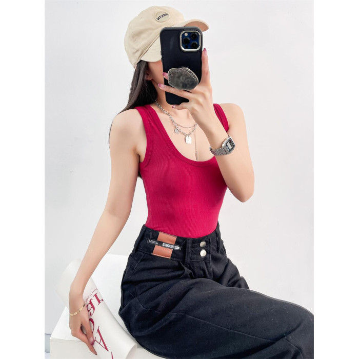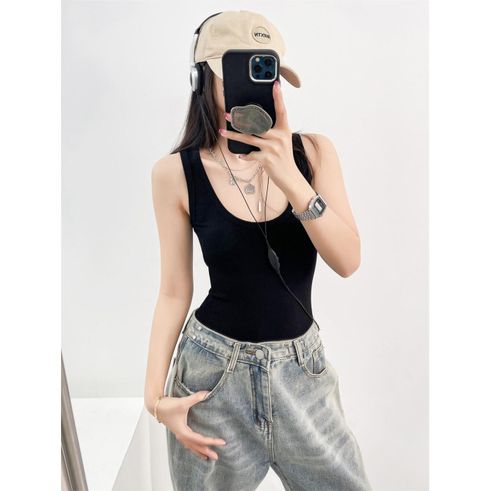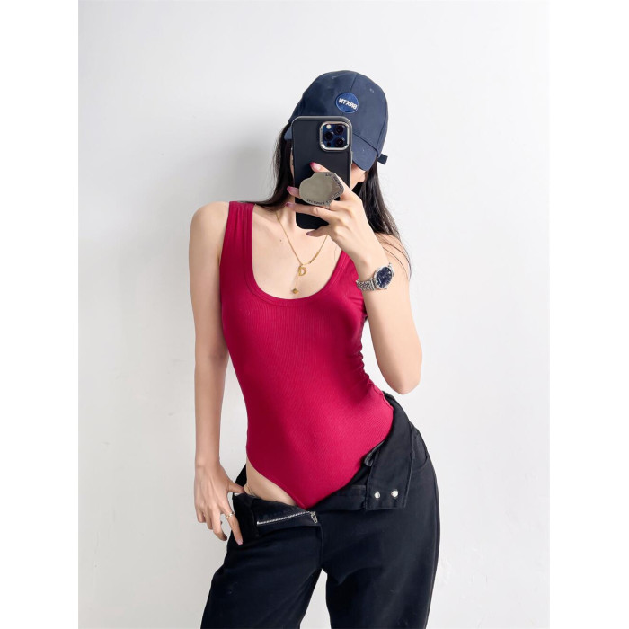 辣妹低胸深U領背心連體衣女夏季外穿性感緊身純色吊帶上衣打底衫