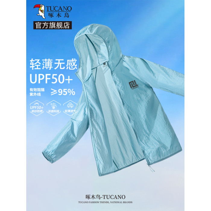 啄木鳥冰絲防曬衣男生夏季2025新款藍色輕薄透氣外套男士防曬服Y