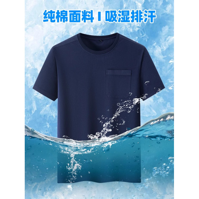 啄木鳥2025新款純棉短袖t恤男士夏季薄款口袋休閒中老年人爸爸裝C