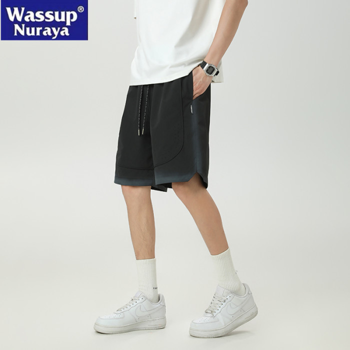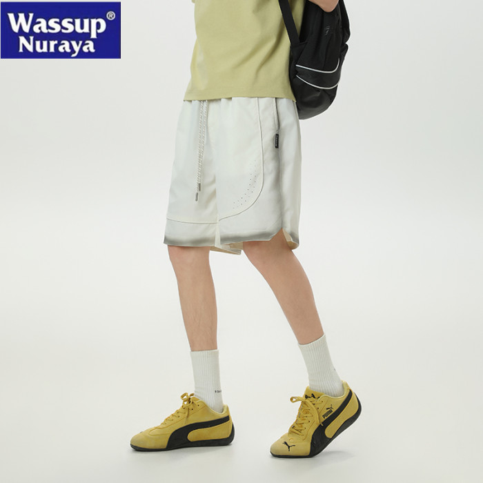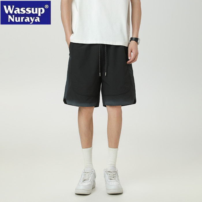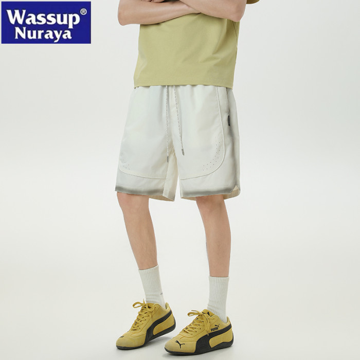 WASSUP NURAYA復古水洗噴染休閒短褲男寬松沙灘青年速乾五分中褲