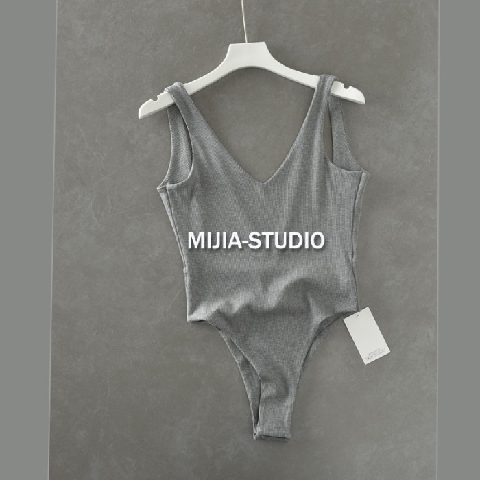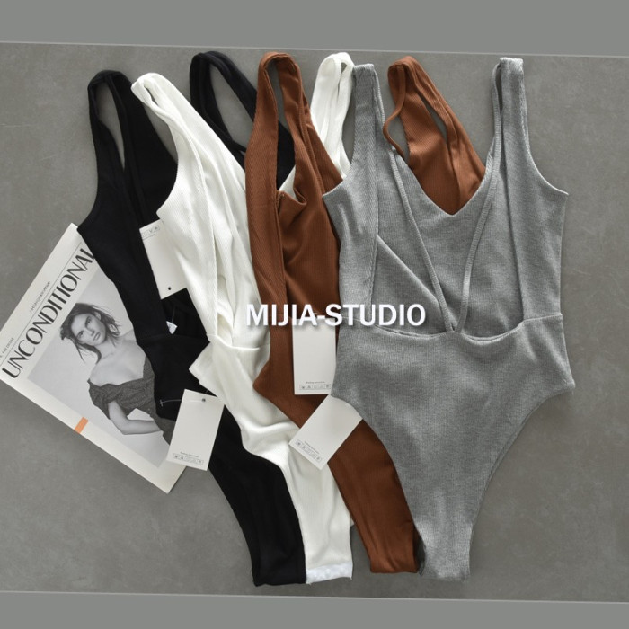 歐美風大V領緊身彈力連體T恤女士連體衣性感吊帶背心打底衫內搭