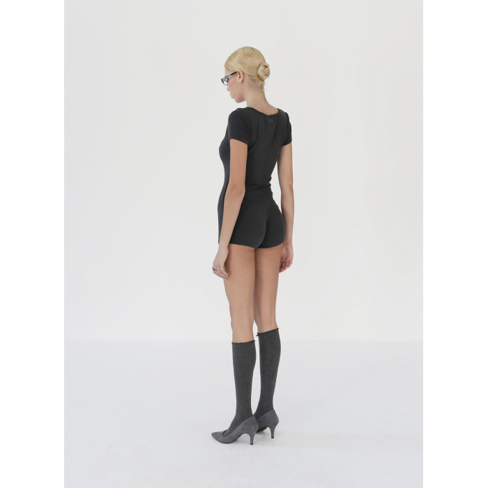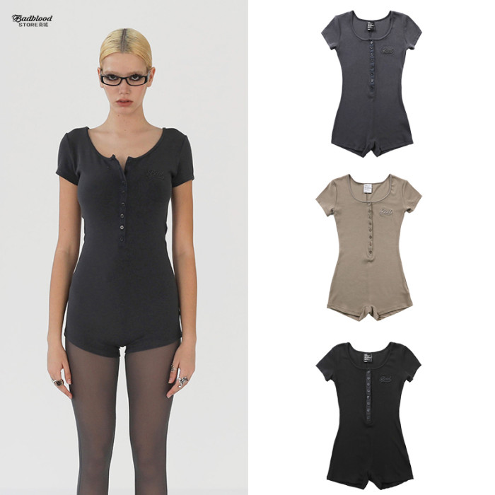 badblood歐美圓領修身短袖運動連體褲純色辣妹健身短褲休閒連體衣