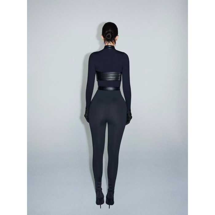 kylie同款~KHY長袖長褲塑形連體衣 drop002系列圓領滑雪服打底女