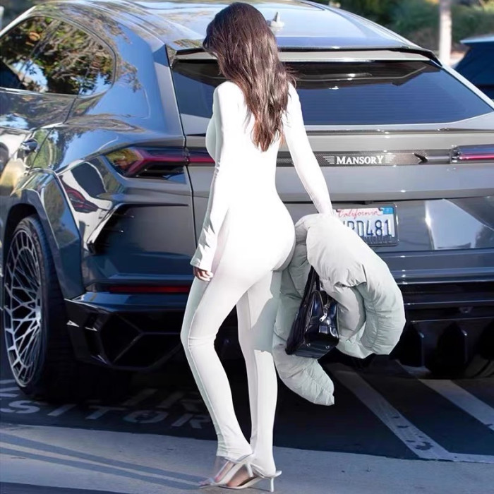 kylie同款~KHY長袖長褲塑形連體衣 drop002系列圓領滑雪服打底女