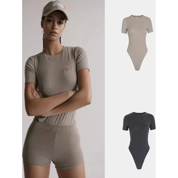 badblood韓國小衆新款刺綉連體褲潮美式辣妹性感連體衣女短袖T恤
