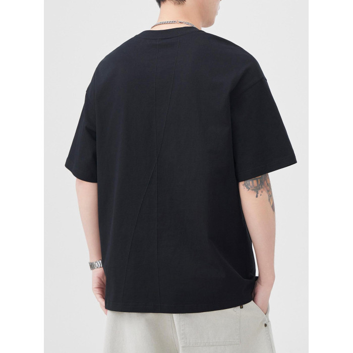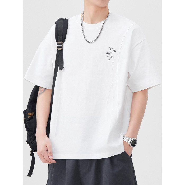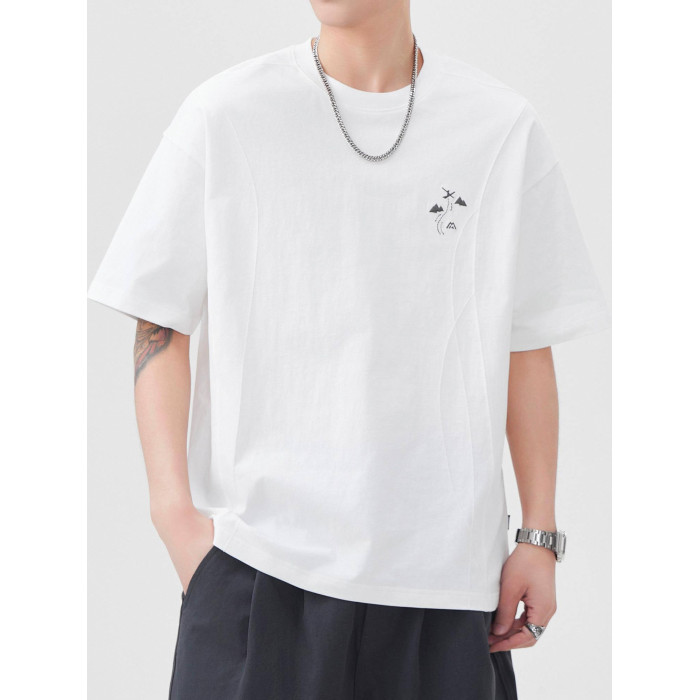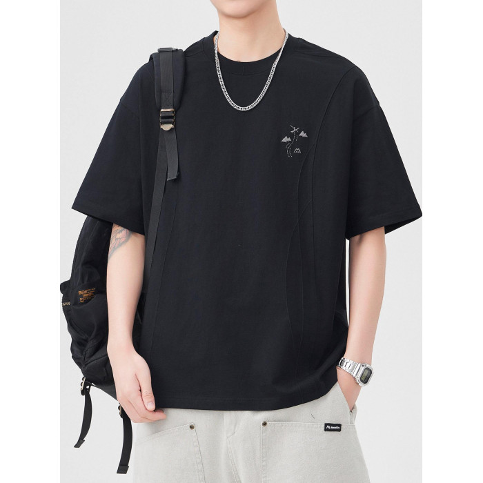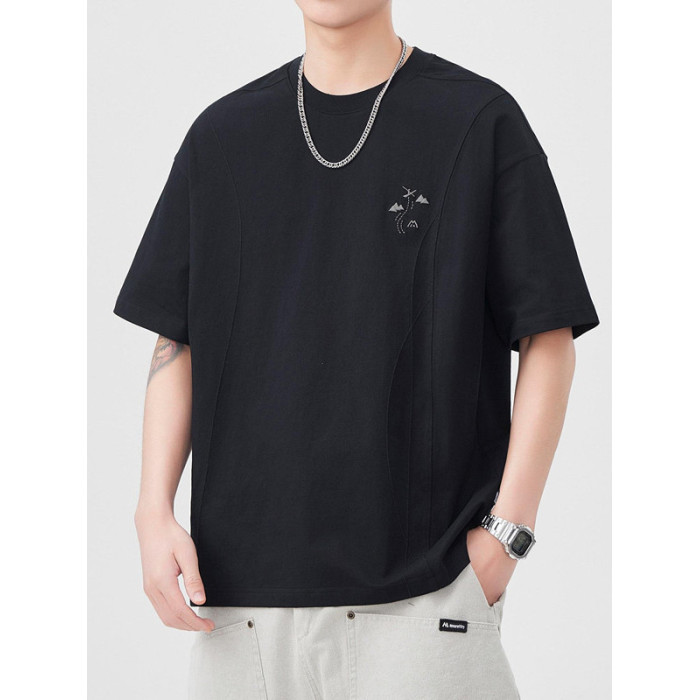 潮流重磅新疆棉短袖t恤男士潮牌刺綉上衣夏季寬松百搭體恤上衣