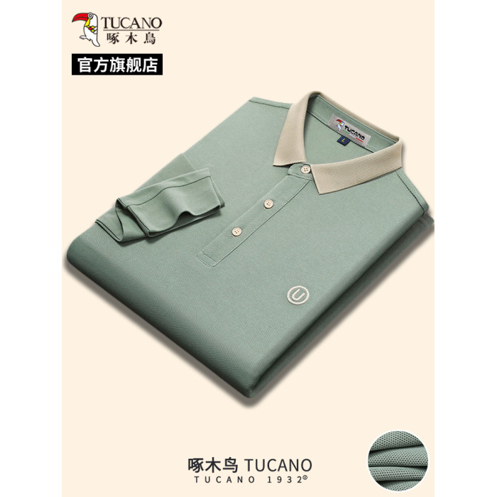 啄木鳥春季新款男士polo衫中青年商務長袖休閒T恤爸爸裝翻領上衣C