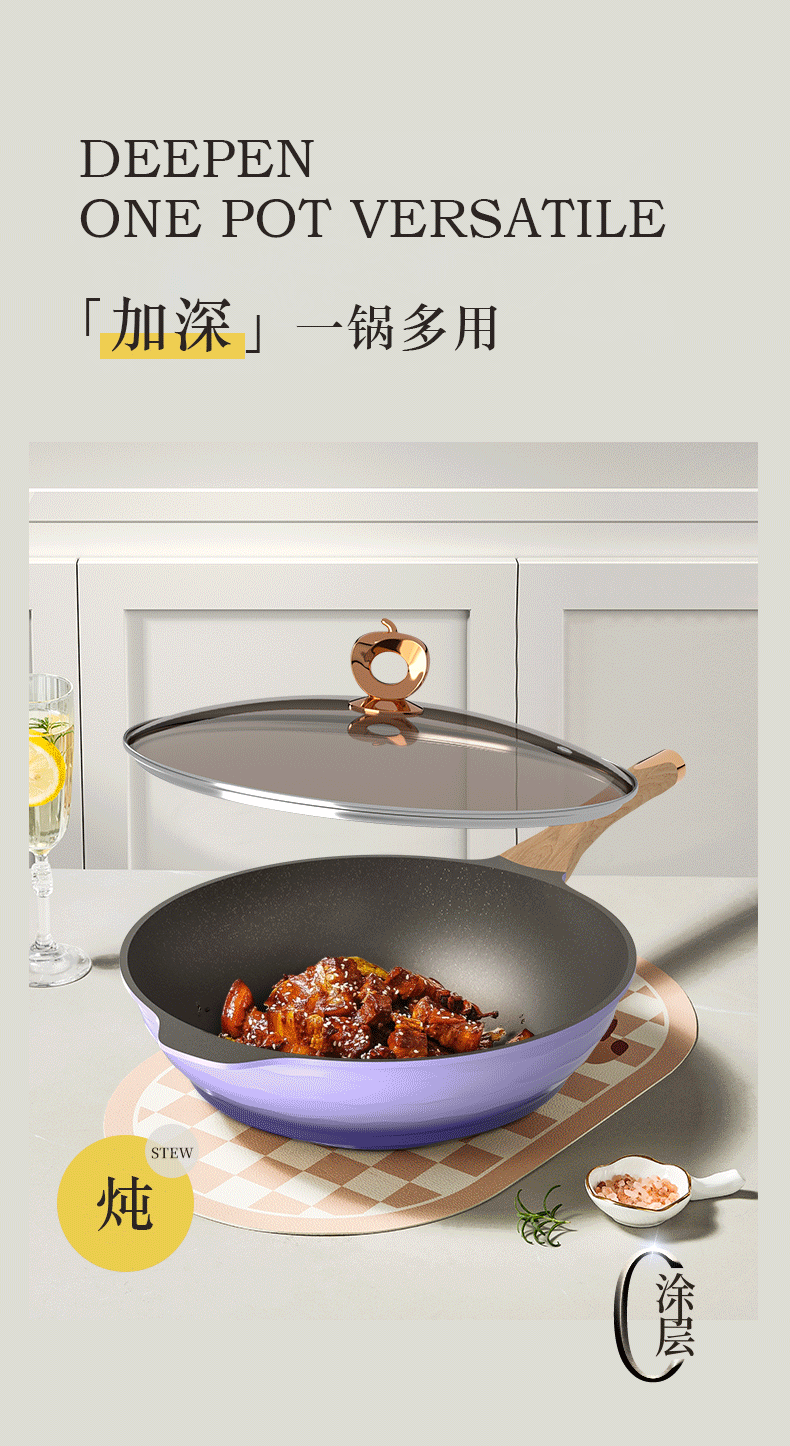 無塗層不沾鍋大容量鈦炒鍋陶瓷鍋多功能燉煮鍋炒菜鍋平底煎鍋