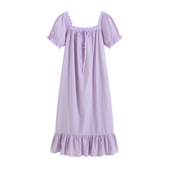 新款宮廷風睡裙少女夏棉長款性感復古法式公主短袖長款寬松睡衣