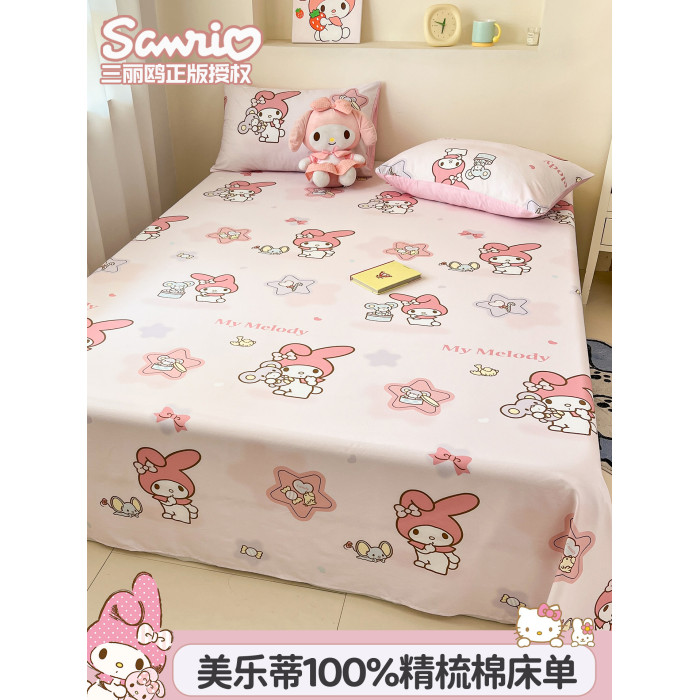 美樂蒂100%精梳純棉床單單件防滑床罩卡通少女心宿舍兒童1.5m被單