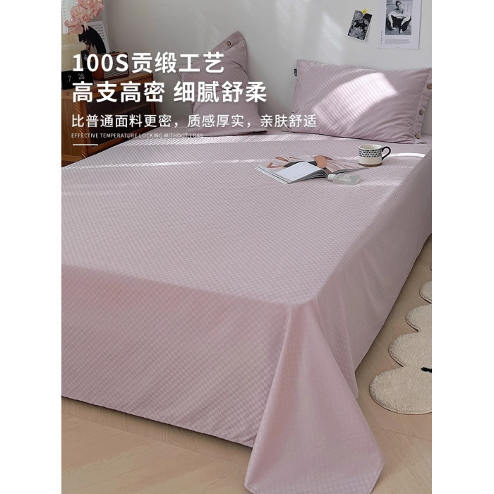 高檔輕奢100支長絨棉純棉床單單件全棉貢緞單人枕套被單三件套