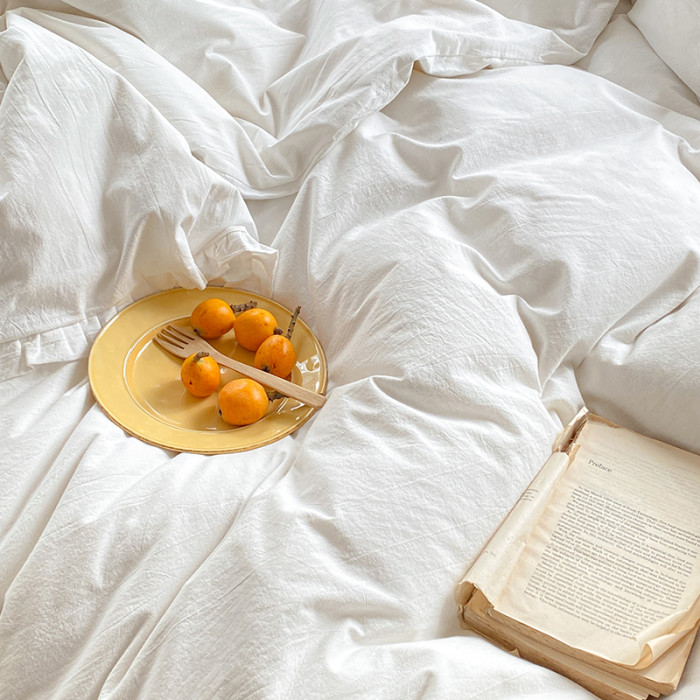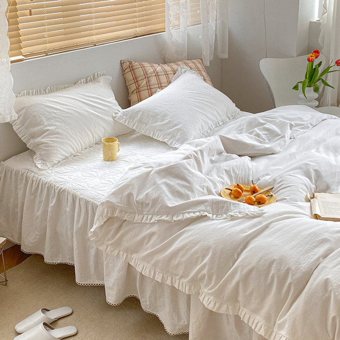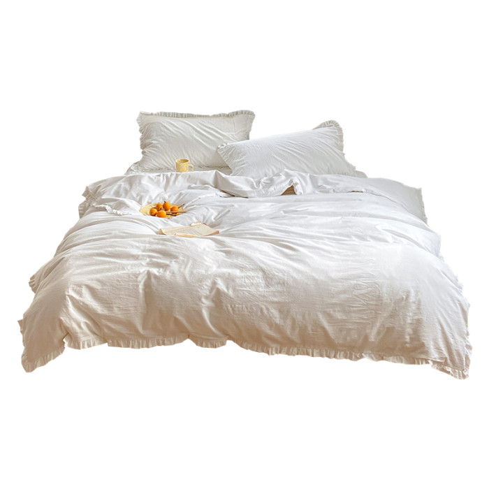 ins風純棉色織水洗棉花邊被套單件全棉150*200*230cm雙人被罩枕套