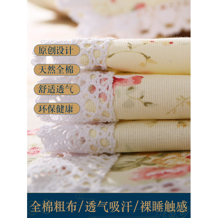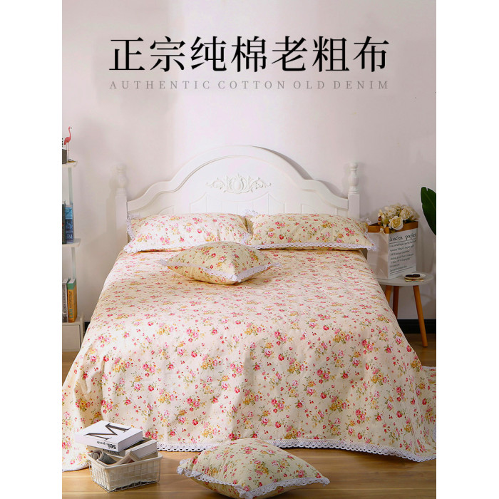 老粗布床單單件全棉純棉加厚加密花邊碎花宿舍大炕單被單三件套