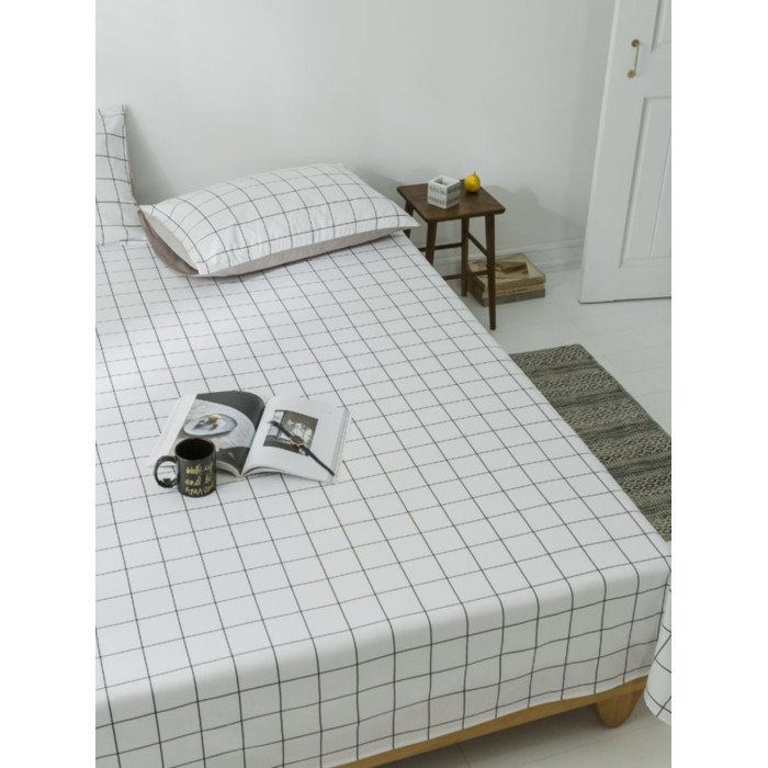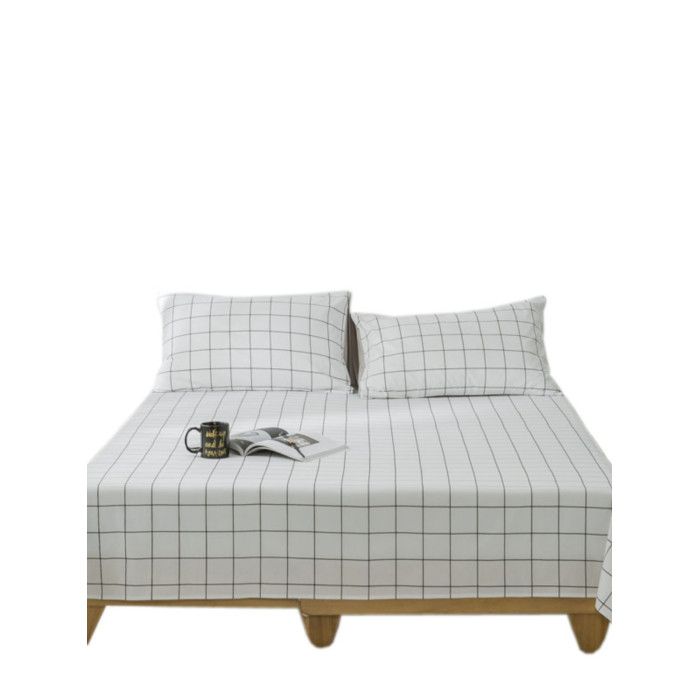 ins民宿風簡約格子全棉床單單件 北歐樣板房純棉素色學生宿舍床單