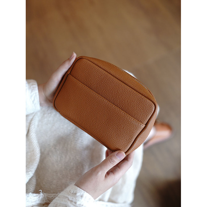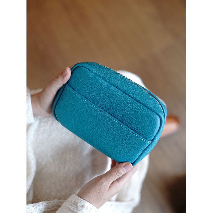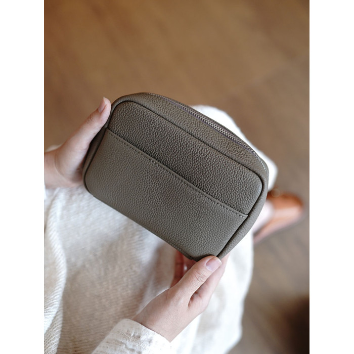 鹿小姐簡約實用頭層牛皮旅行可攜式真皮大容量洗漱化妝包文玩收納包
