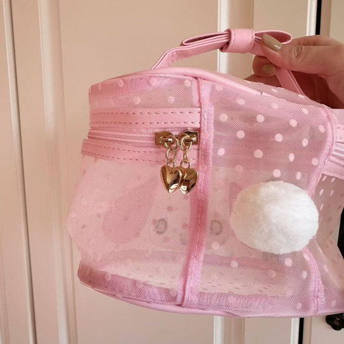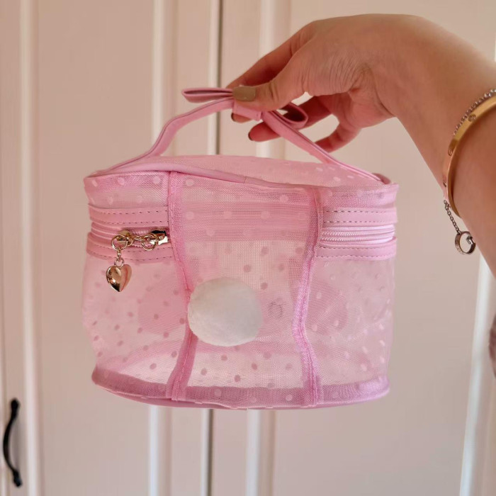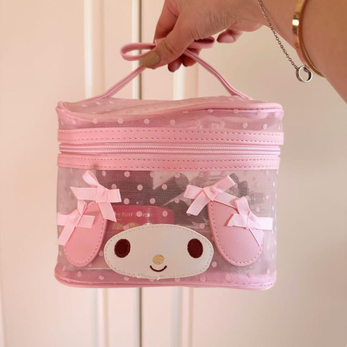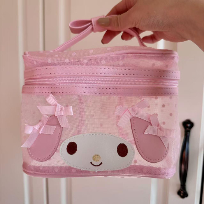 日本可愛卡美樂蒂透明手提大容量化妝包女生少女心蝴蝶結粉色收納