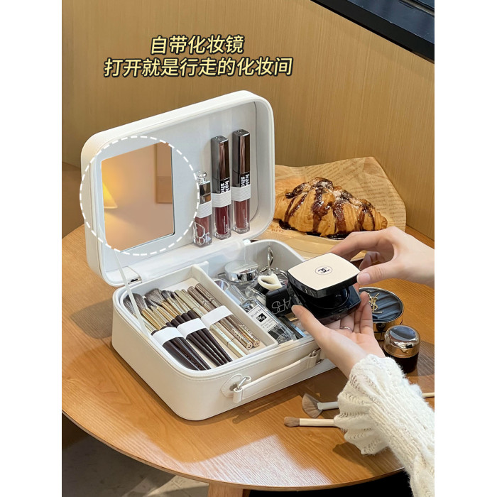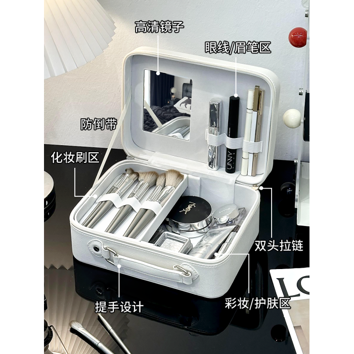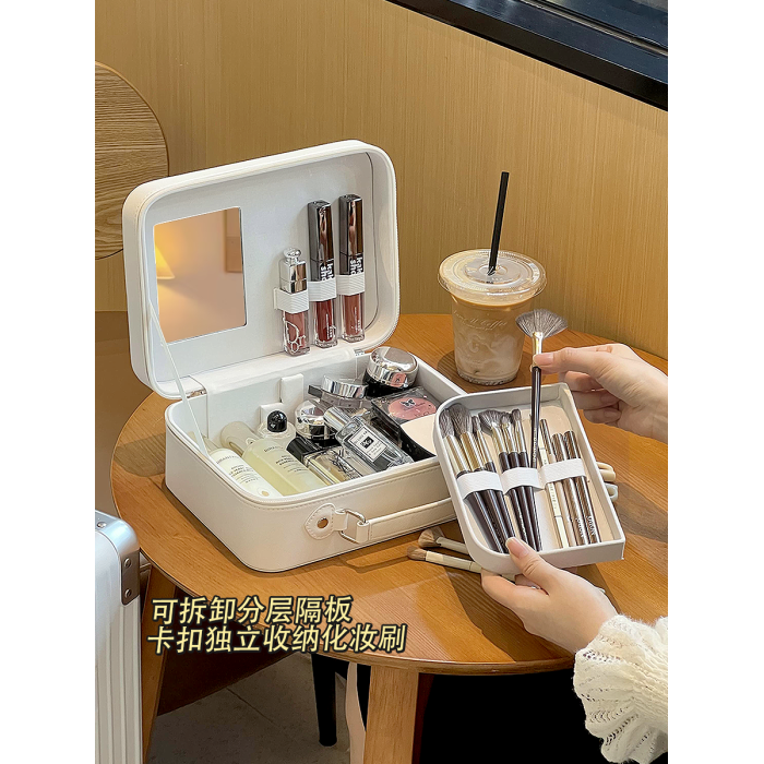 日本進口muj帶鏡子可攜式一體化妝包手提大容量分區層化妝品收納