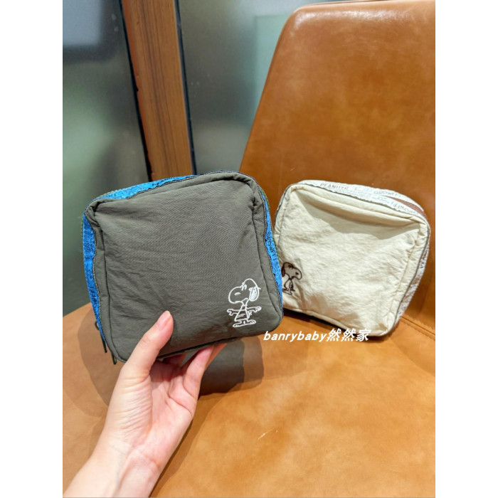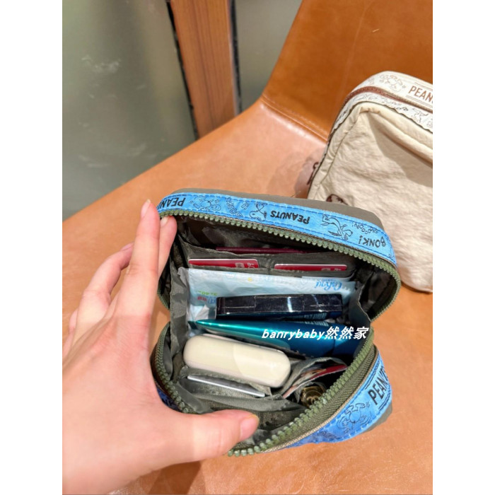 日系史努比復古方形化妝包旅行証件充電寶收納包洗漱包