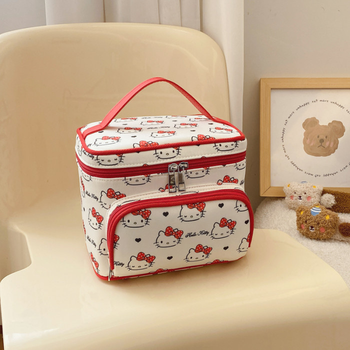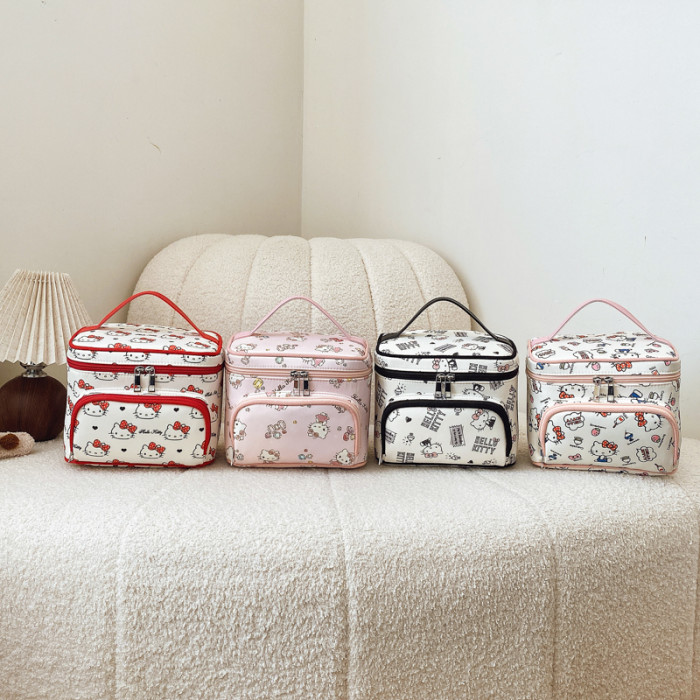 正版HelloKitty化妝包凱蒂貓手提大容量可攜式護膚化妝品收納盒箱