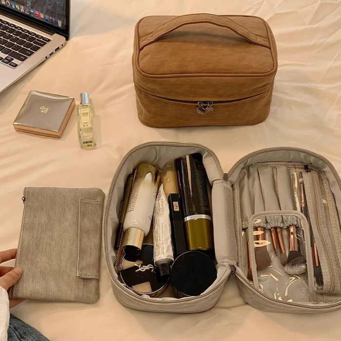 化妝包可攜式女2024新款高級分區大容量化妝品收納包出差旅行洗漱包