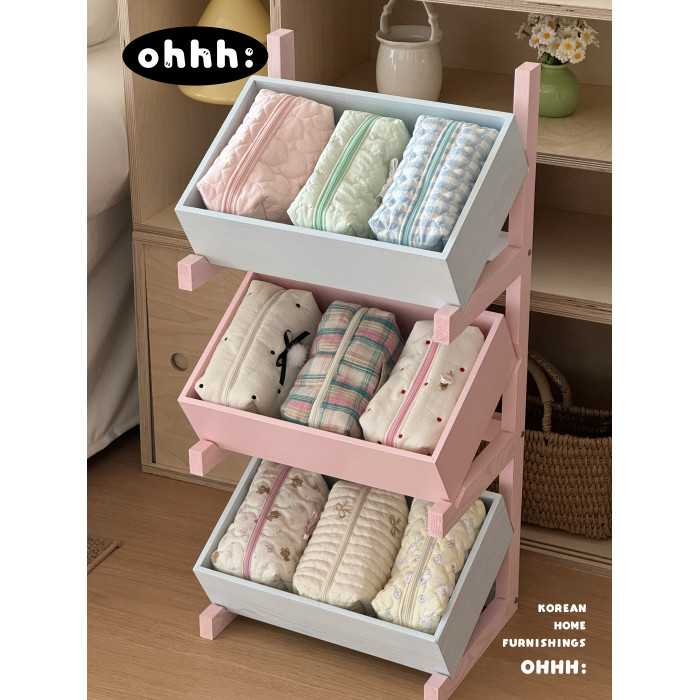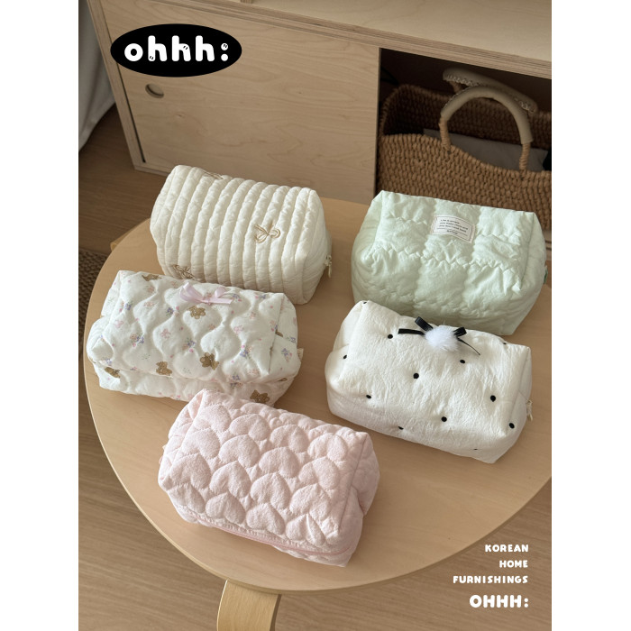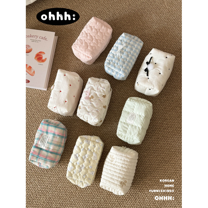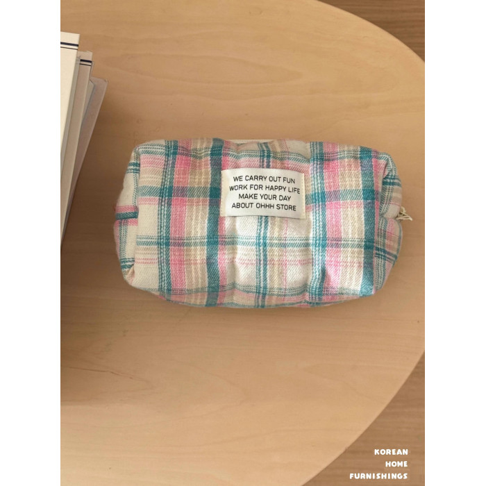 韓國進口格子化妝包旅行小包可愛甜美ins洗漱包鉛筆袋MUIKI