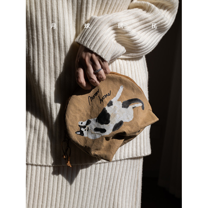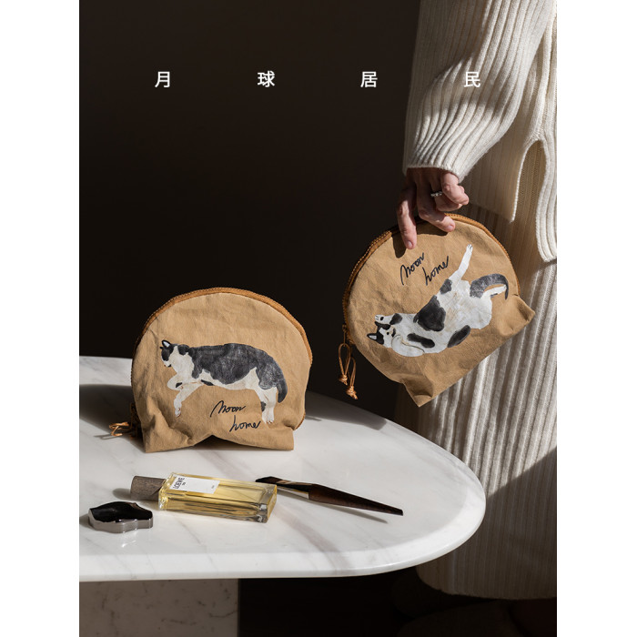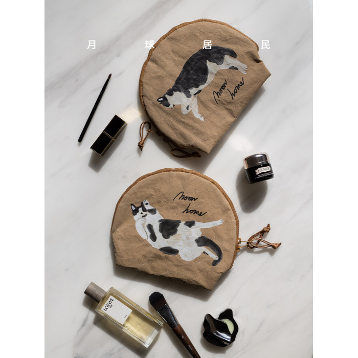 【月球居民】貓咪山丘 原創手繪防水牛皮紙收納袋化妝包旅行洗漱