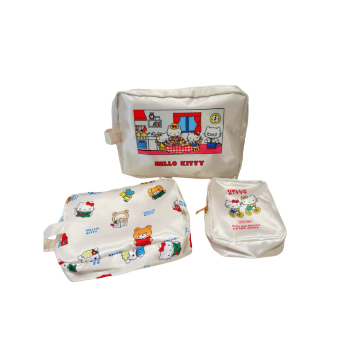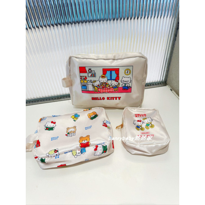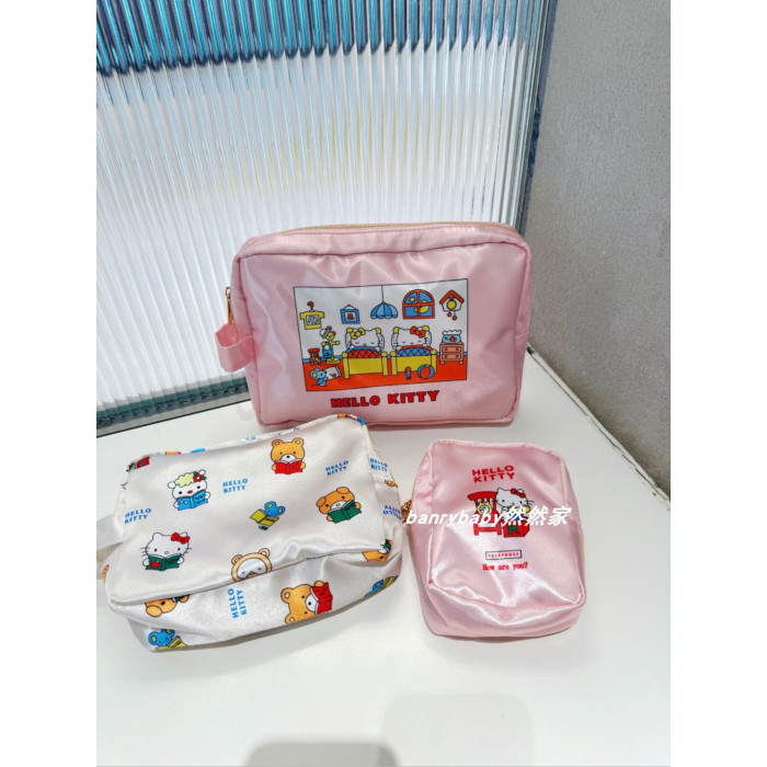 日系可愛貓咪印花收納袋三件套手提化妝包証件包旅行整理收納包