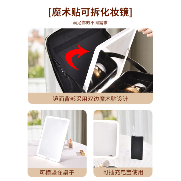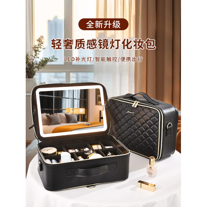 化妝包女2025新款高級可攜式大容量帶鏡子補光燈化妝品收納旅行箱盒
