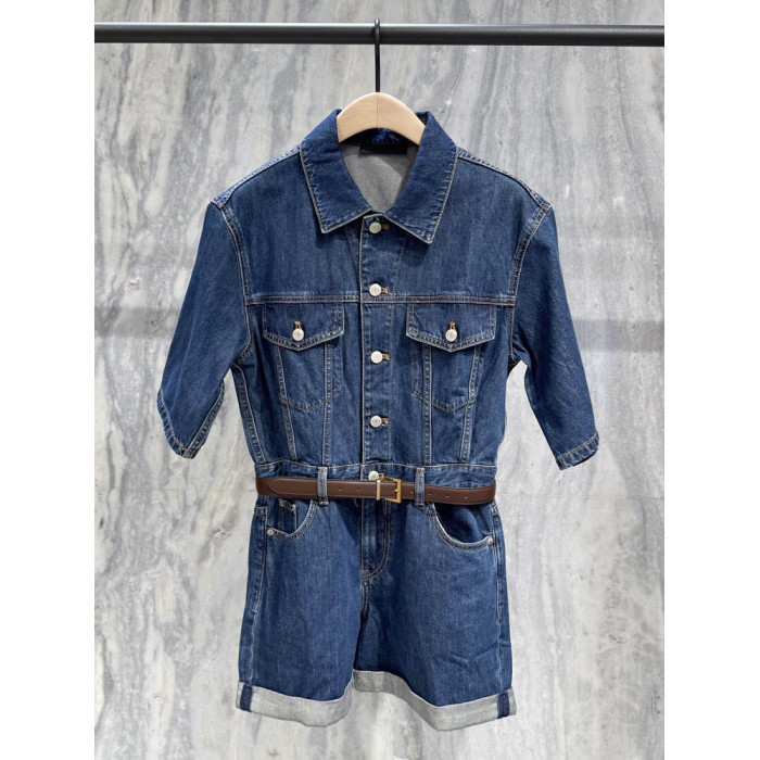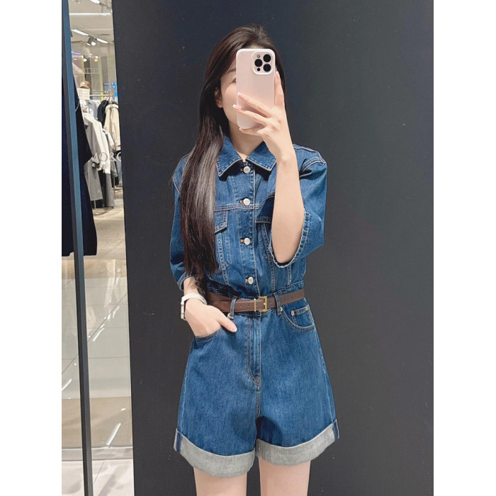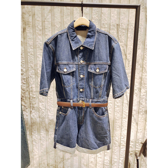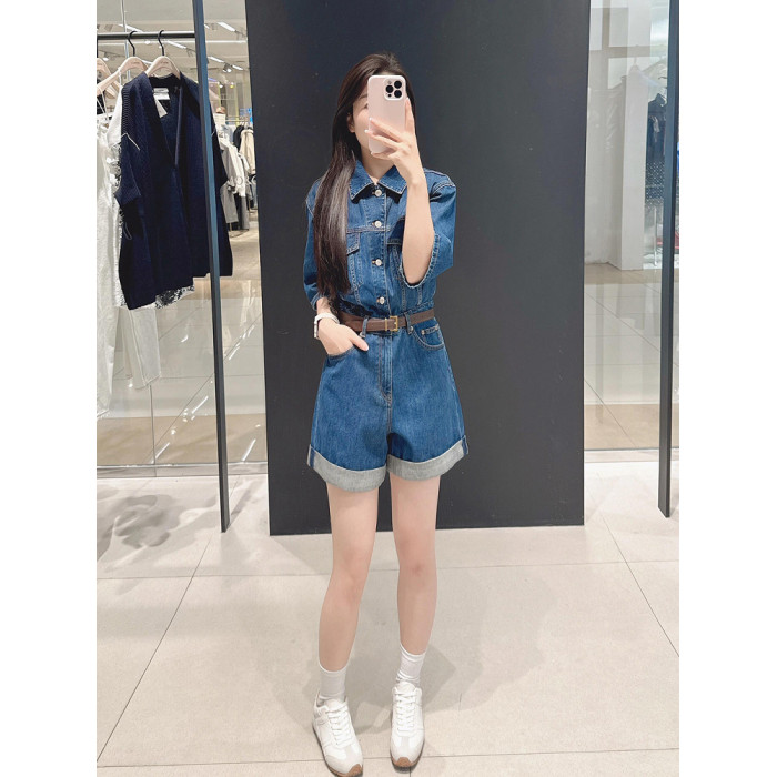 【商場同款】2025夏新品棉質卷邊復古牛仔連體衣褲女百搭高腰