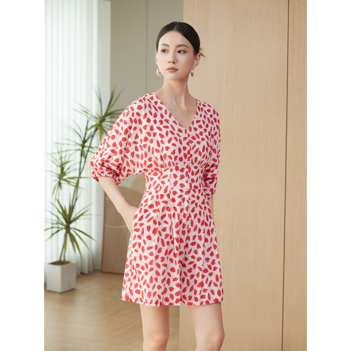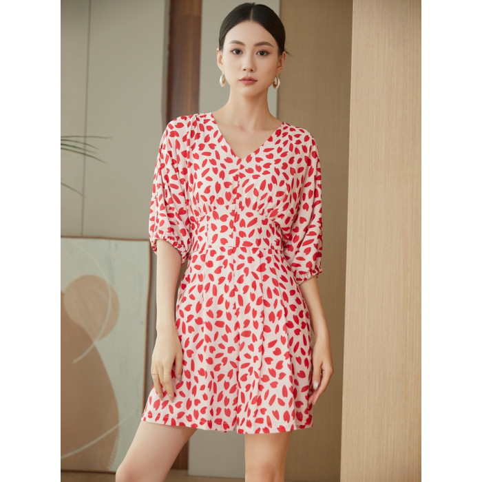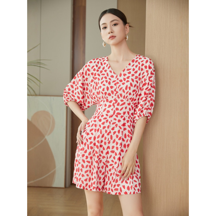 2025新款連體衣褲顯瘦優雅濶腿褲減齡七分袖高級感長褲高腰V領