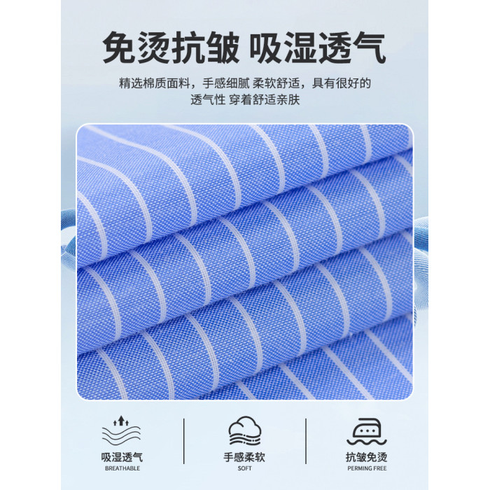 藍條紋長袖+藍細條紋長袖 【免燙抗皺】