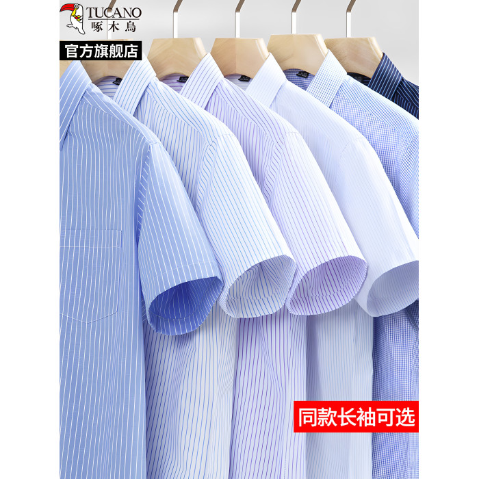 藍條紋短袖+藍細條紋短袖 【免燙抗皺】