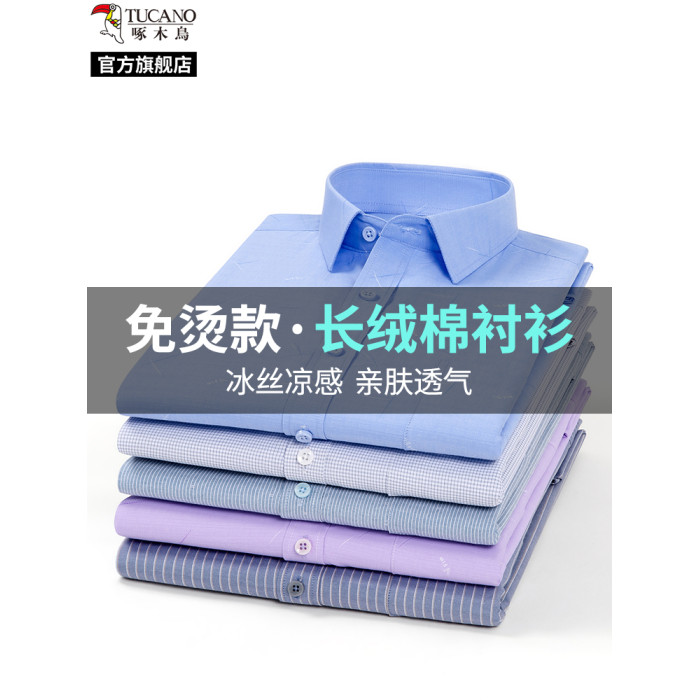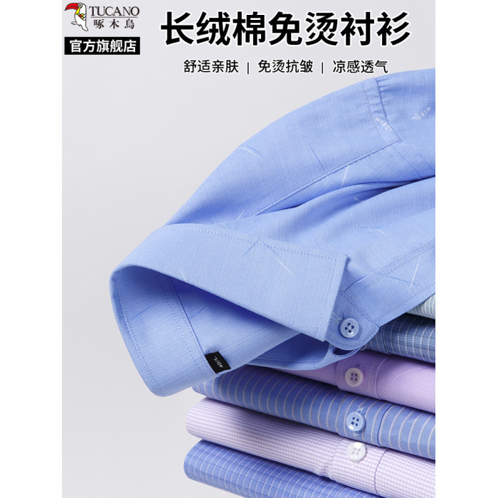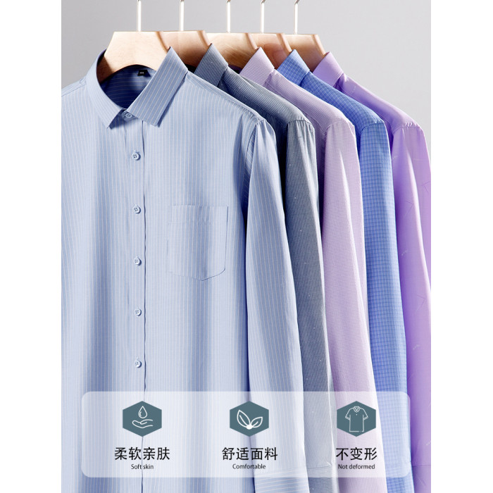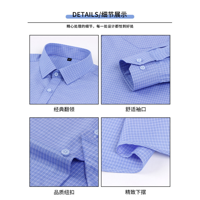啄木鳥格子男士襯衫長袖2024秋季免燙抗皺商務工裝中年爸爸裝襯衣