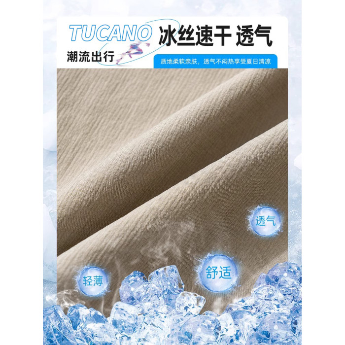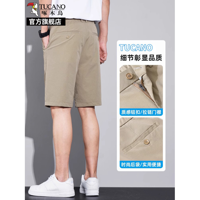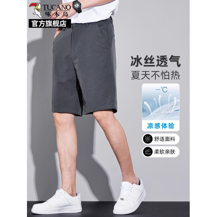 啄木鳥冰絲休閒短褲男五分褲夏季薄款寬松直筒中褲商務西裝短褲K