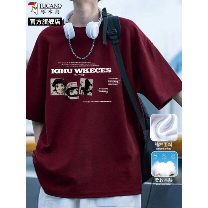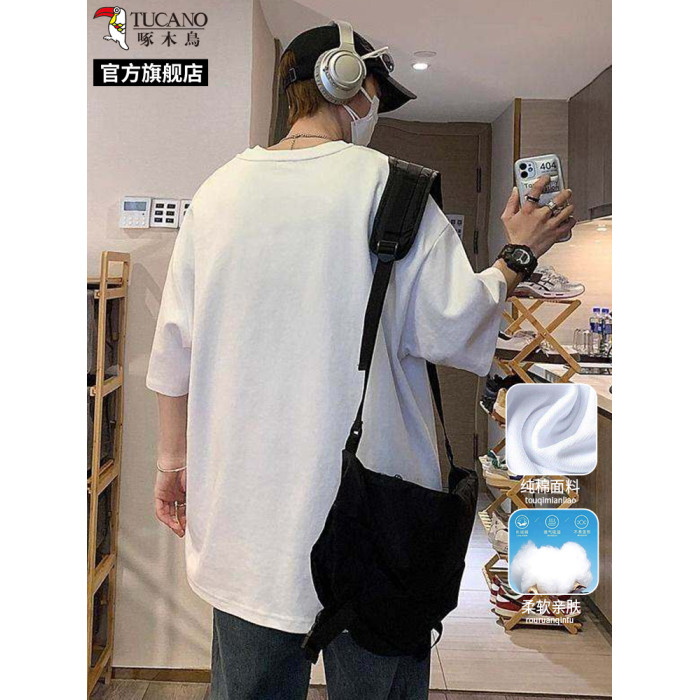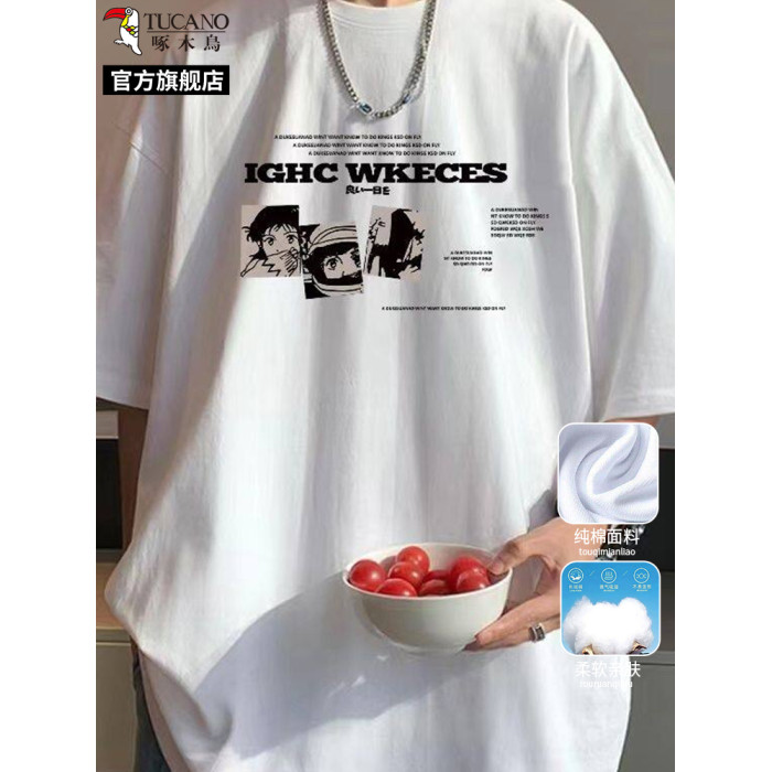 啄木鳥重磅純棉短袖男士2025夏季美式高街復古印花情侶款休閒T恤