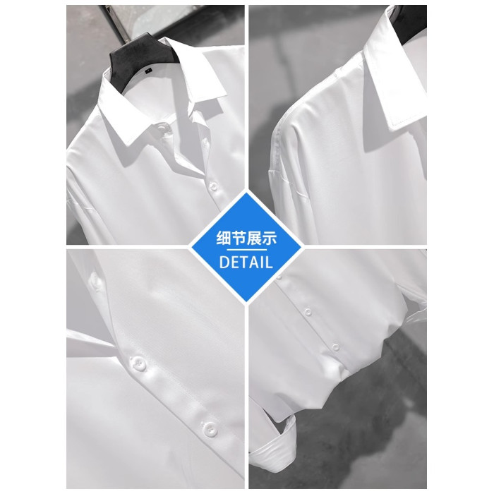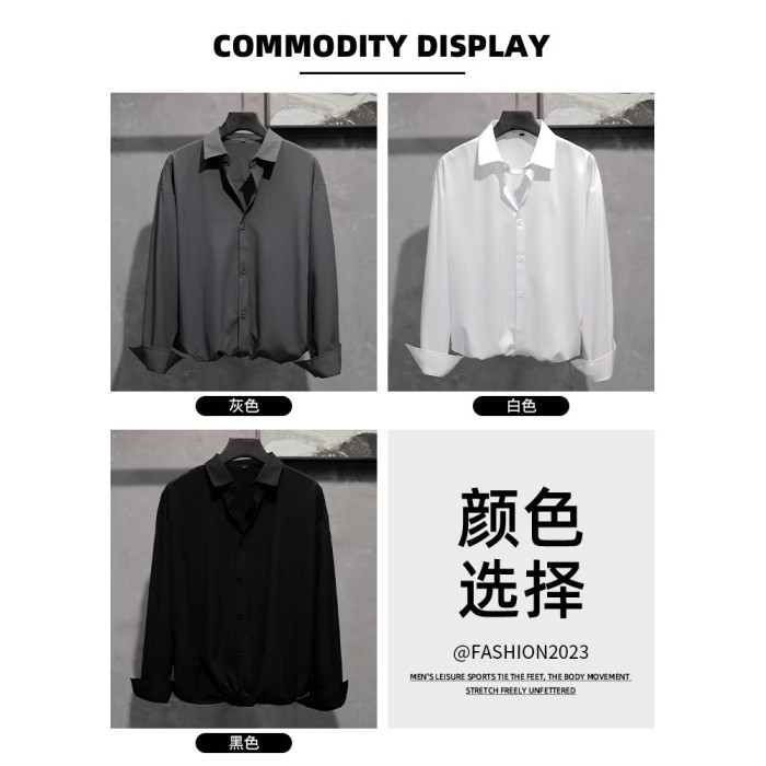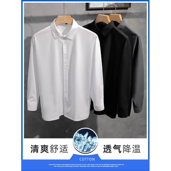 啄木鳥垂感冰絲長袖襯衫男士夏季薄款寬松高級感休閒短袖襯衣服K
