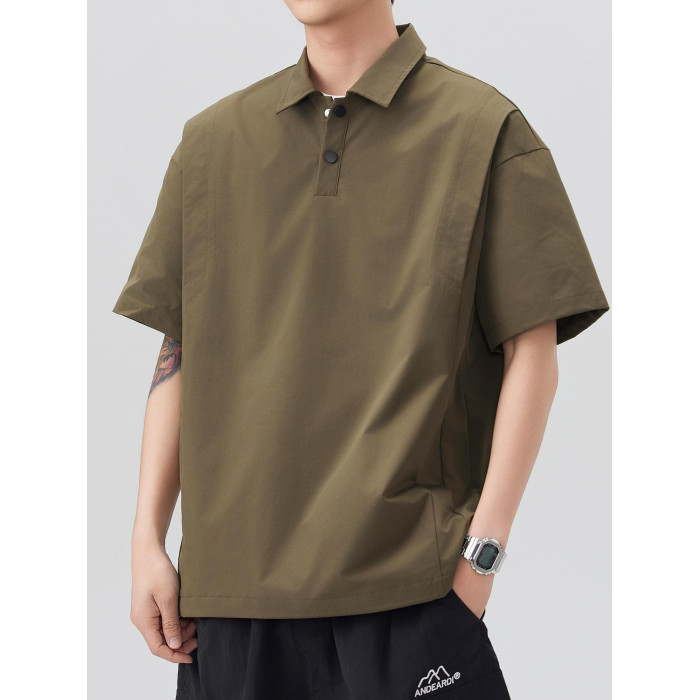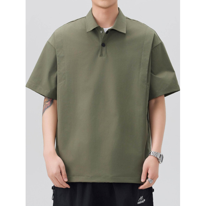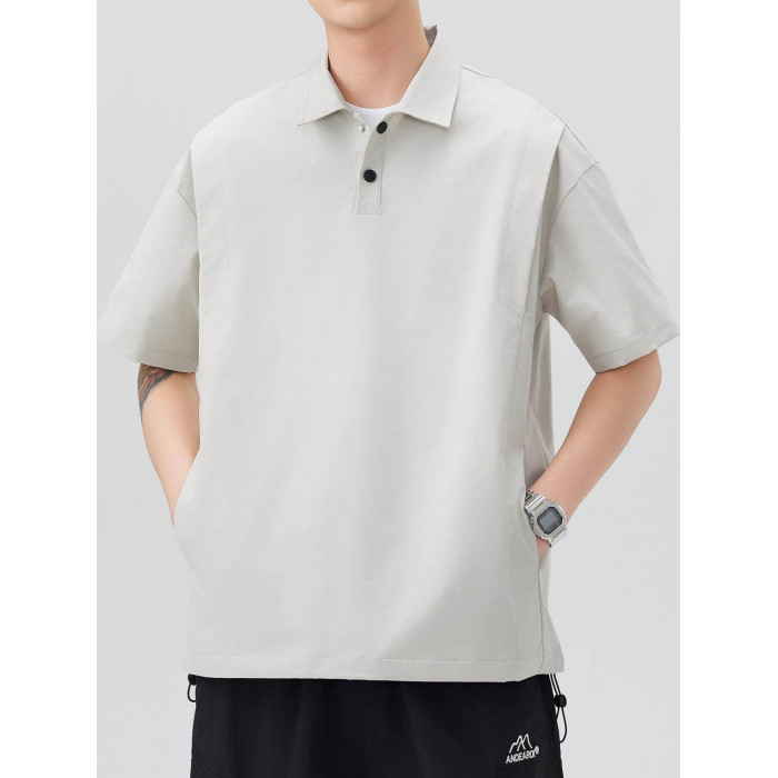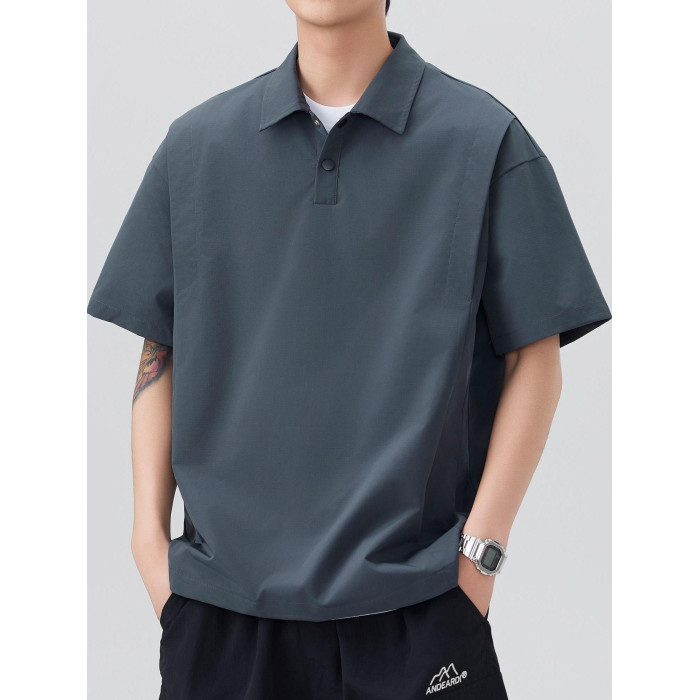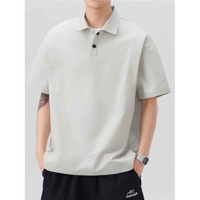 夏季薄款純色翻領短袖POLO衫男士2025新款潮牌輕薄寬松休閒上衣