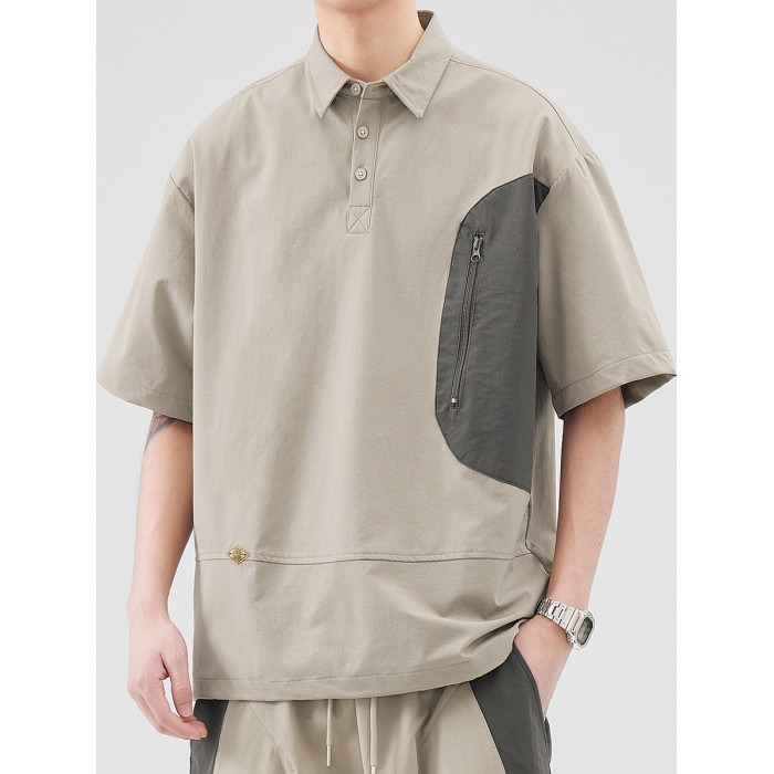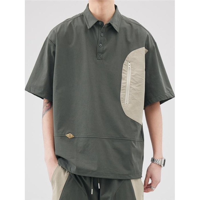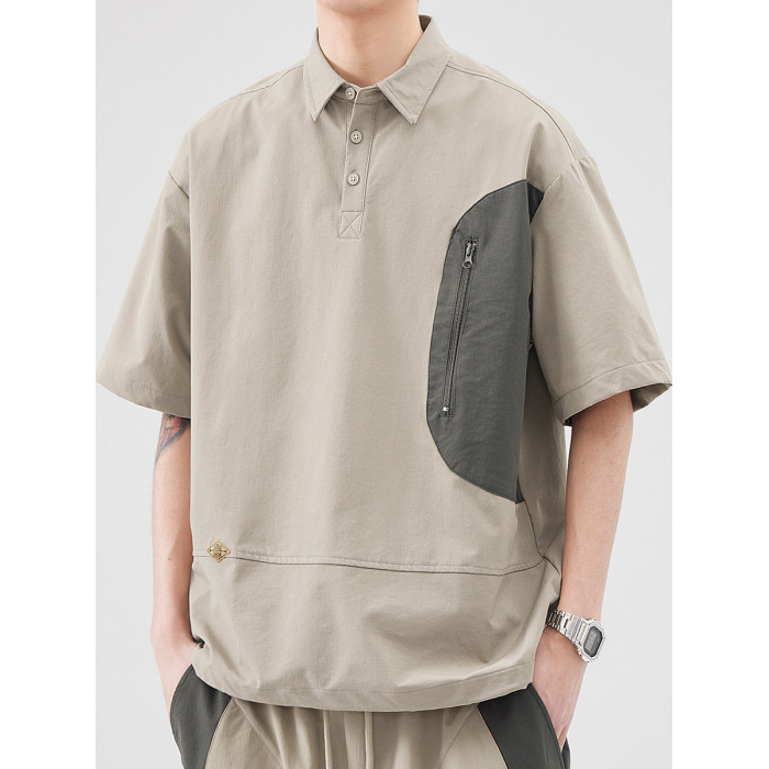 美式工裝短袖襯衫男2025夏季薄款休閒寬松冰絲速乾polo衫男士T恤
