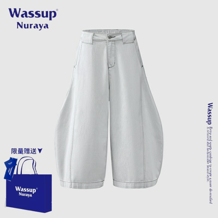 WASSUP NURAYA美式復古彎刀牛仔褲男士夏季新款濶腿褲寬松七分褲