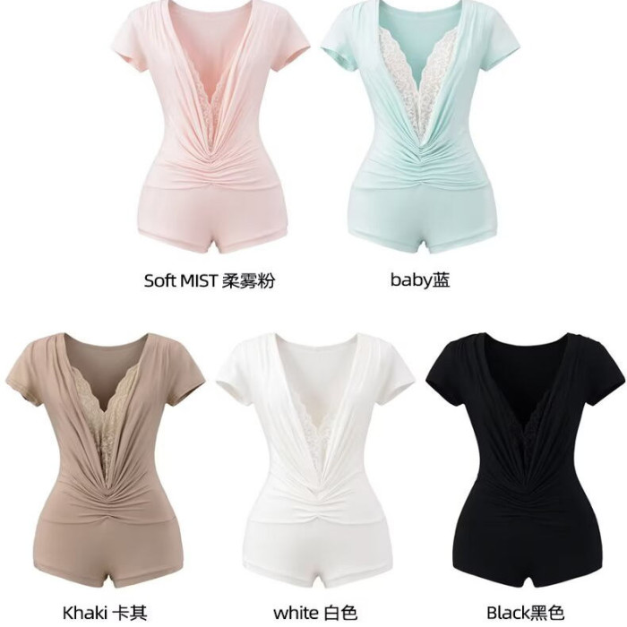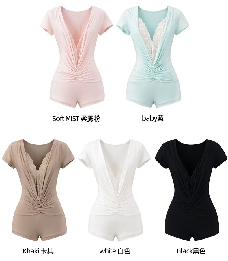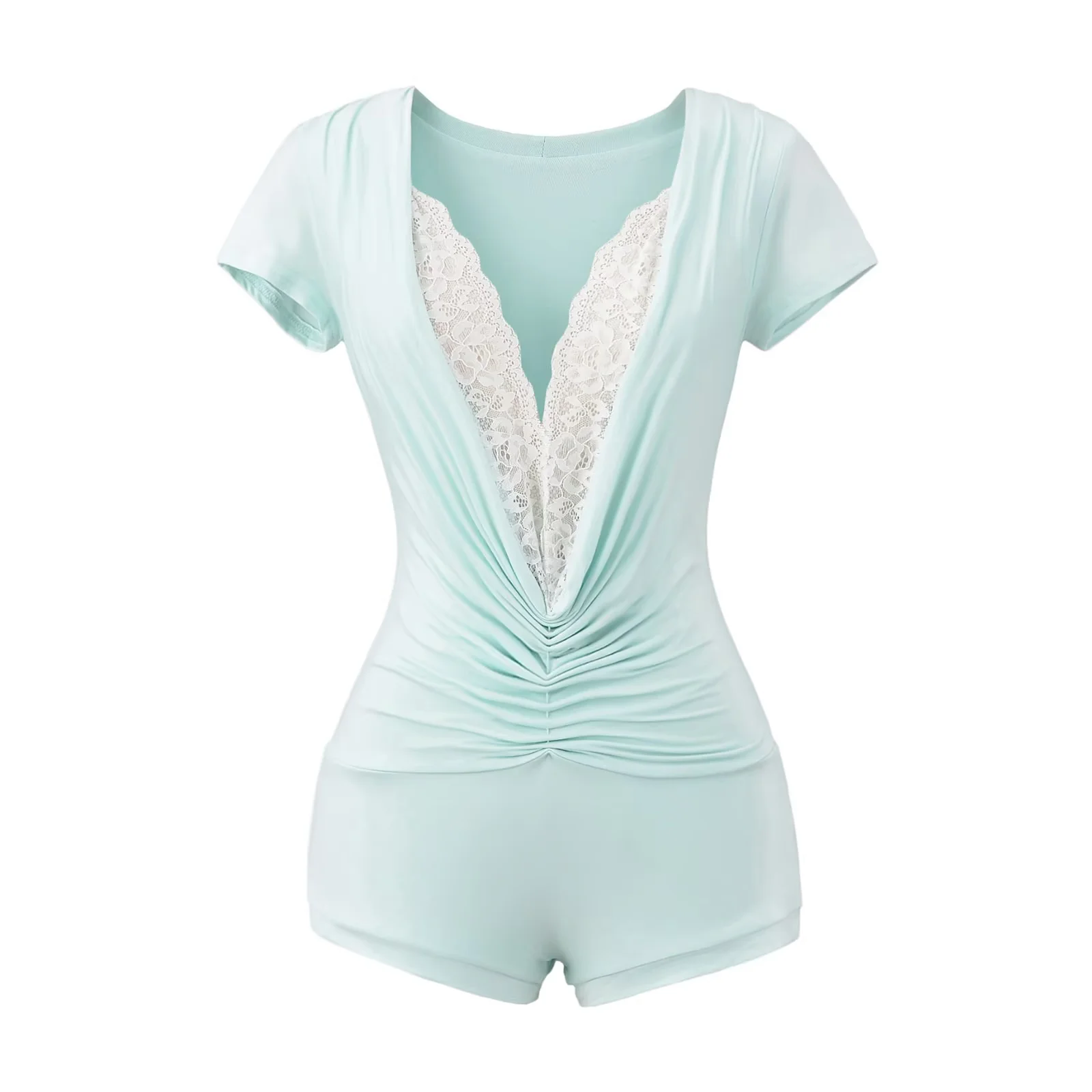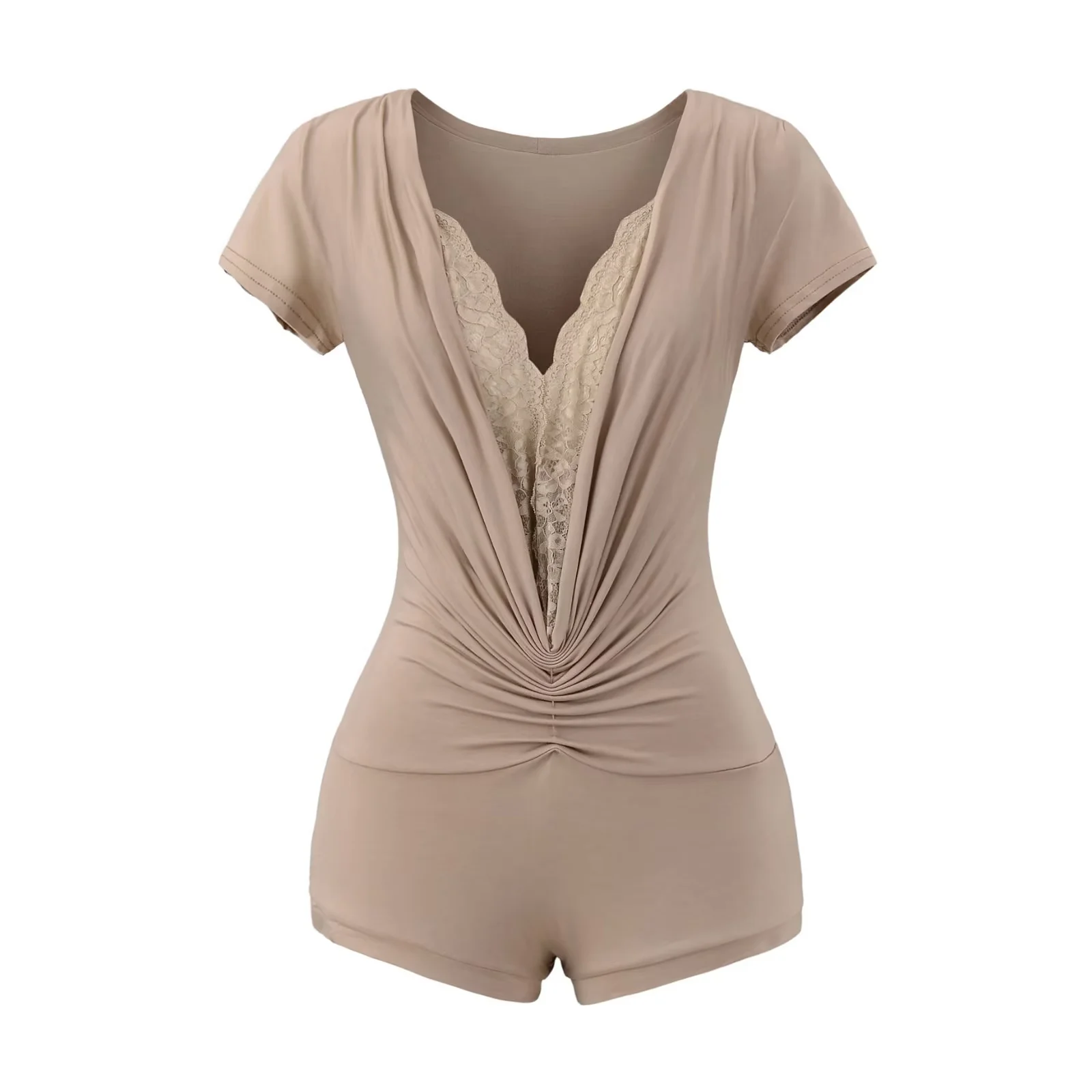 2025夏季新款女裝時尚氣質百搭顯瘦V領蕾絲邊連體衣女