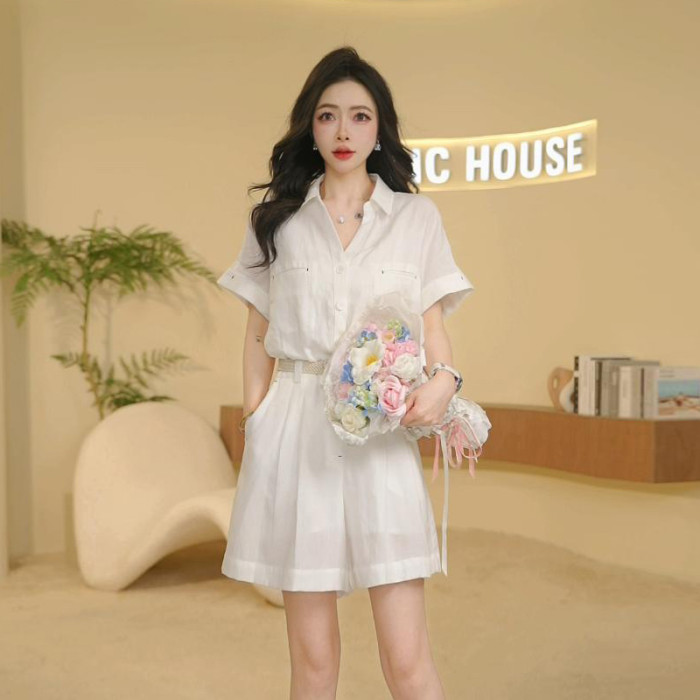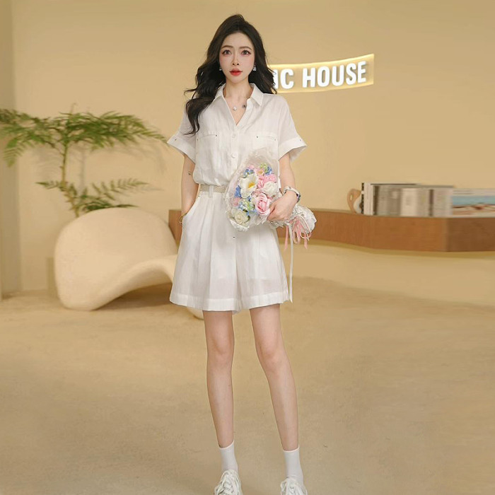 Basic House/百家好25夏薄款氣質減齡紐釦腰帶連體衣B0185B5D352