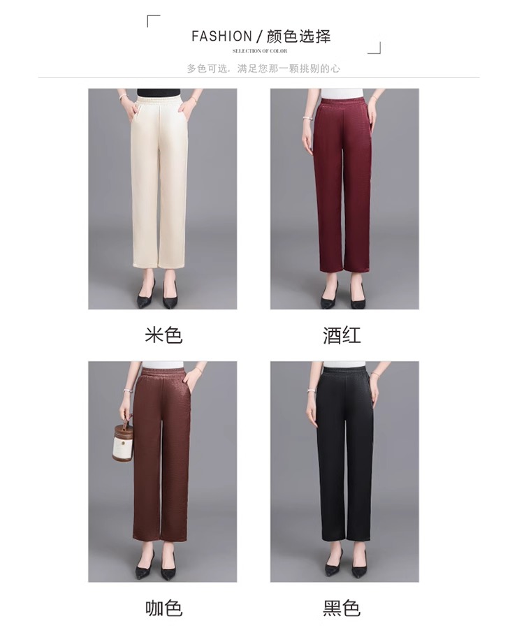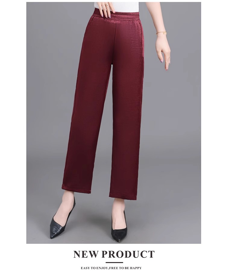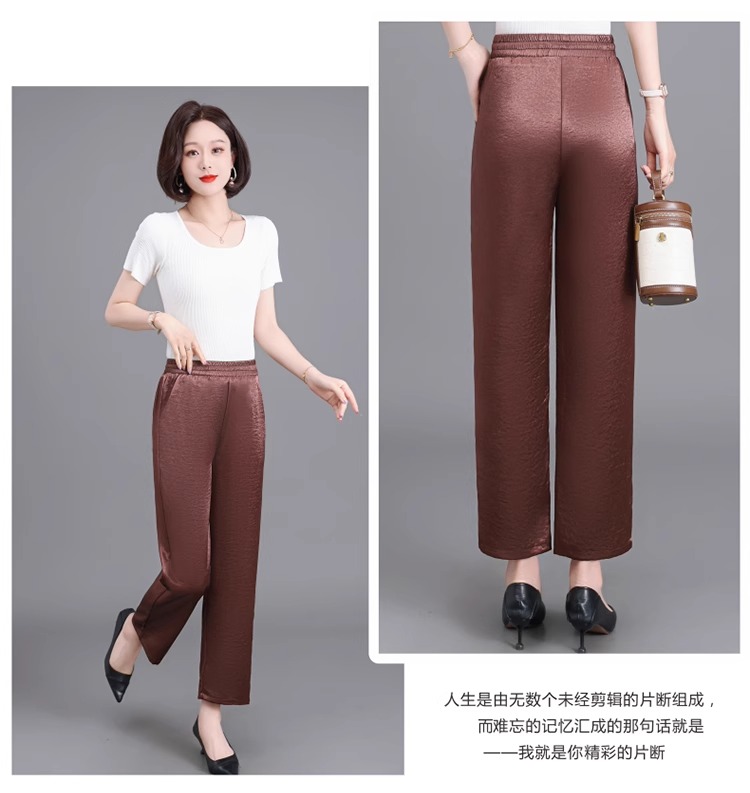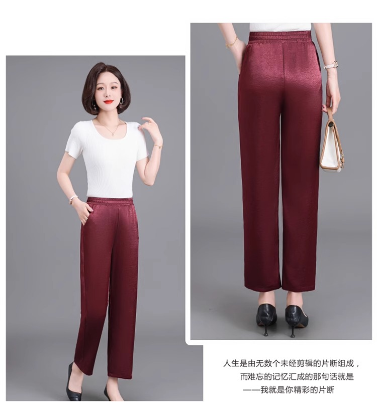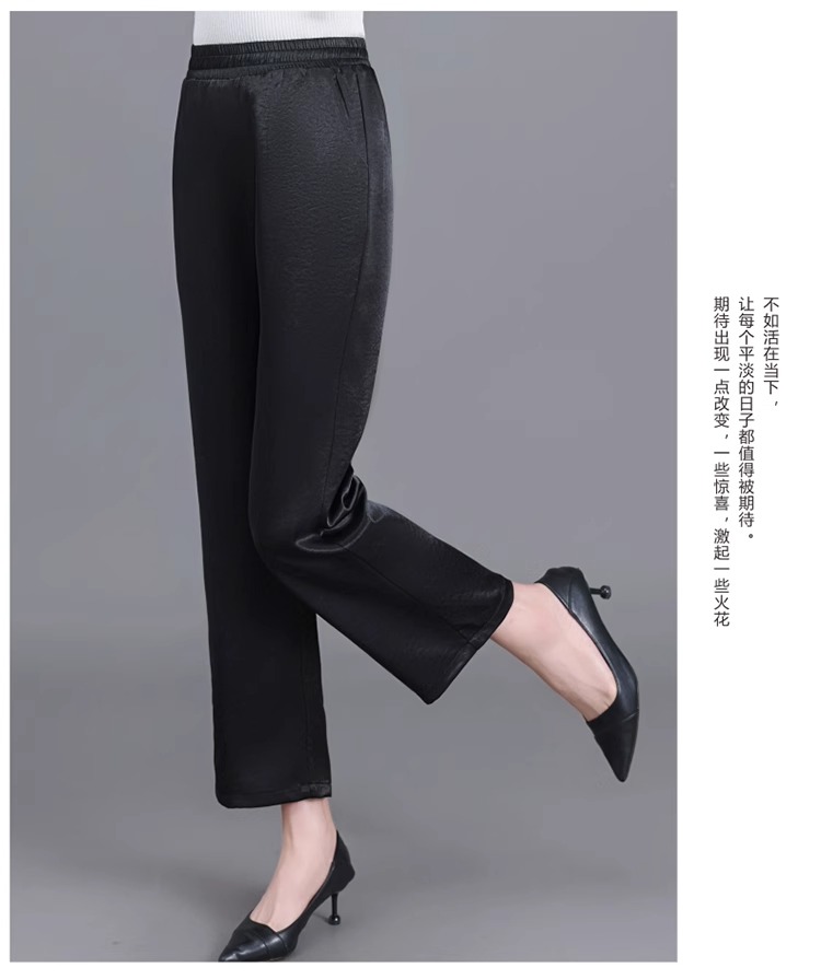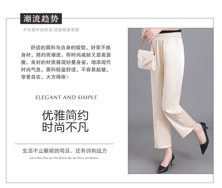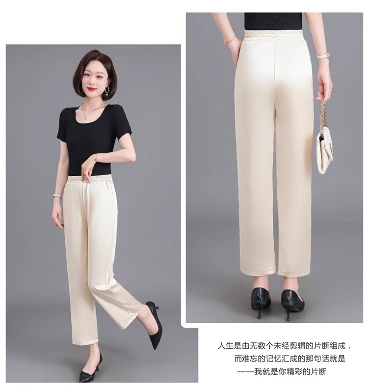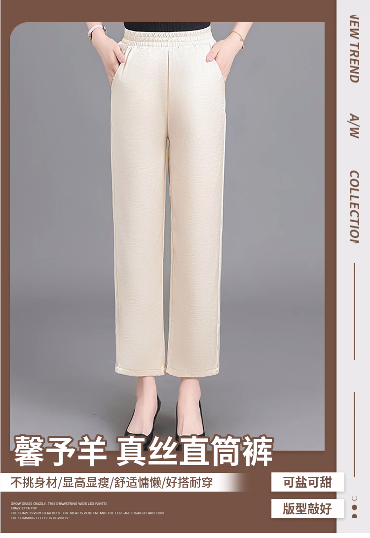 杭州重磅真絲休閒褲夏季薄款醋酸九分濶腿褲中老年桑蠶絲高腰長褲