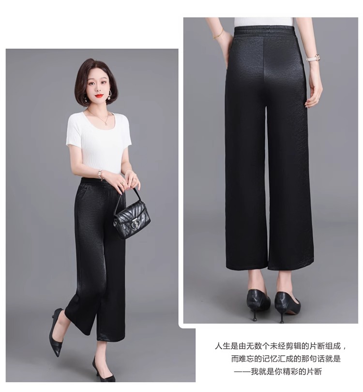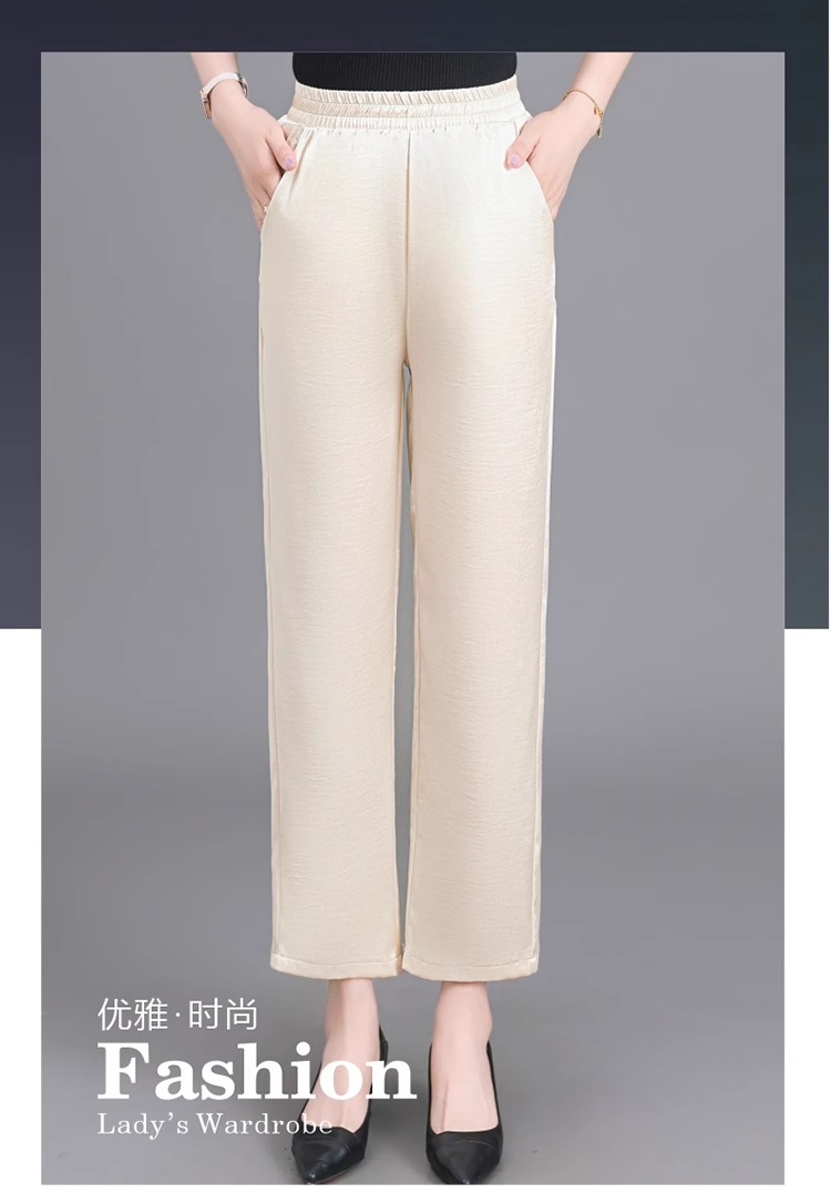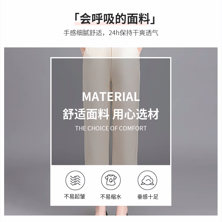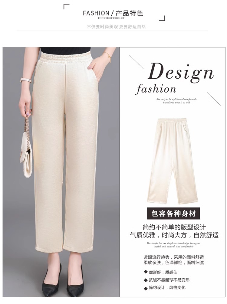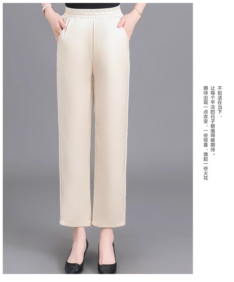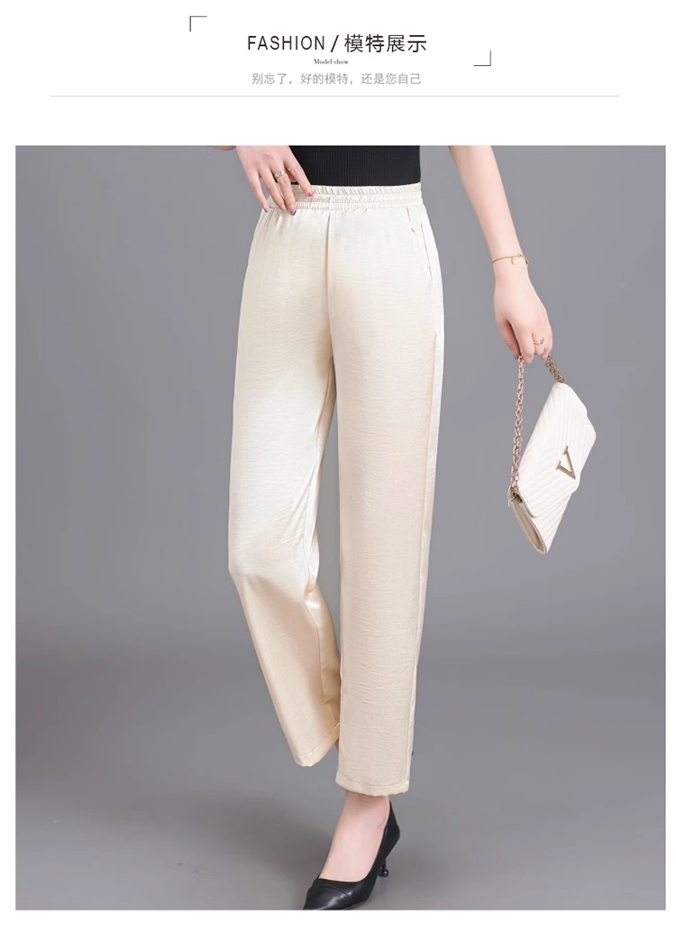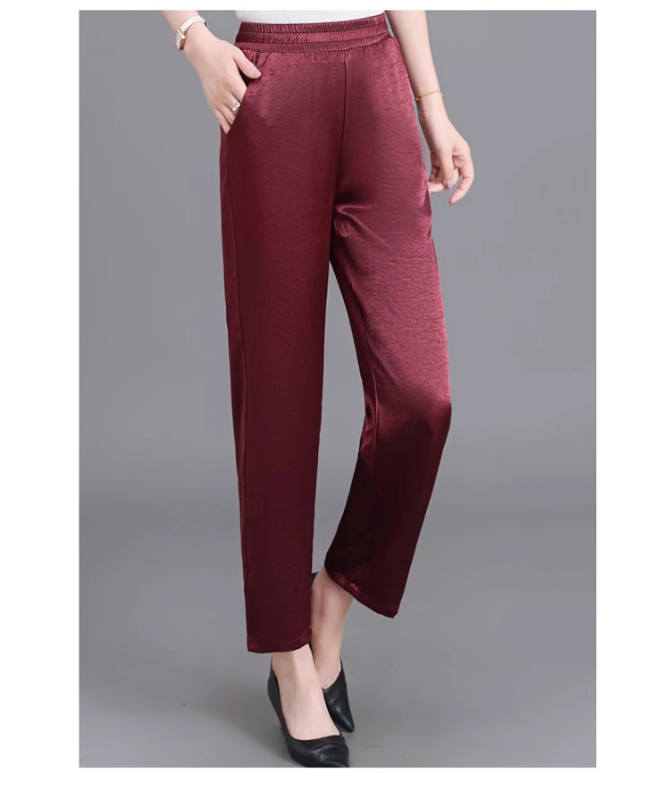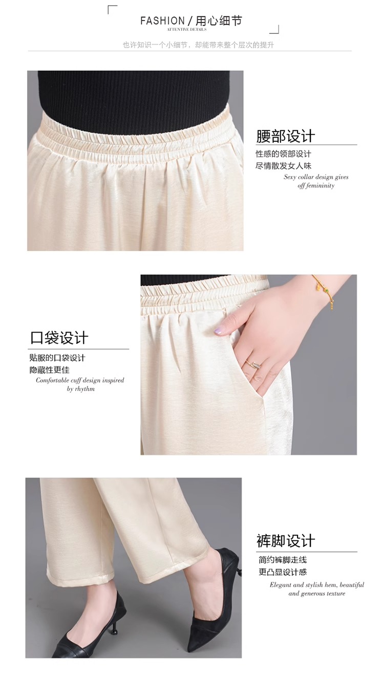 杭州重磅真絲休閒褲夏季薄款醋酸九分濶腿褲中老年桑蠶絲高腰長褲