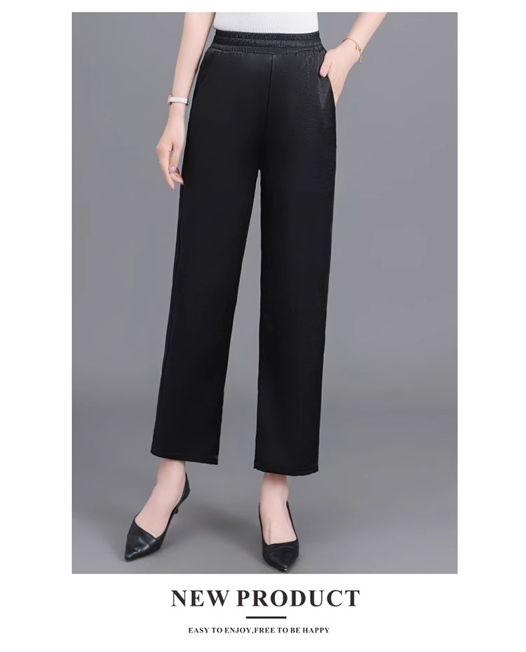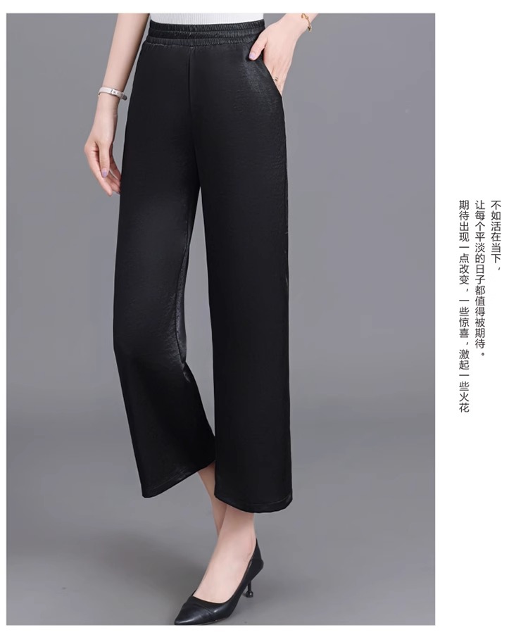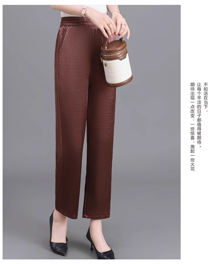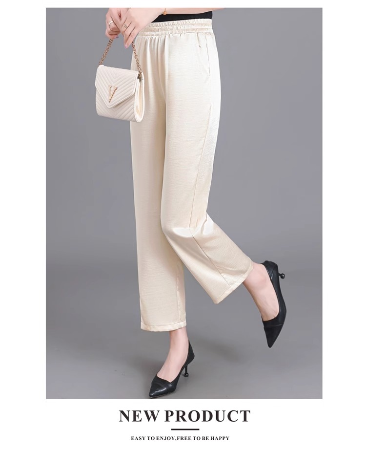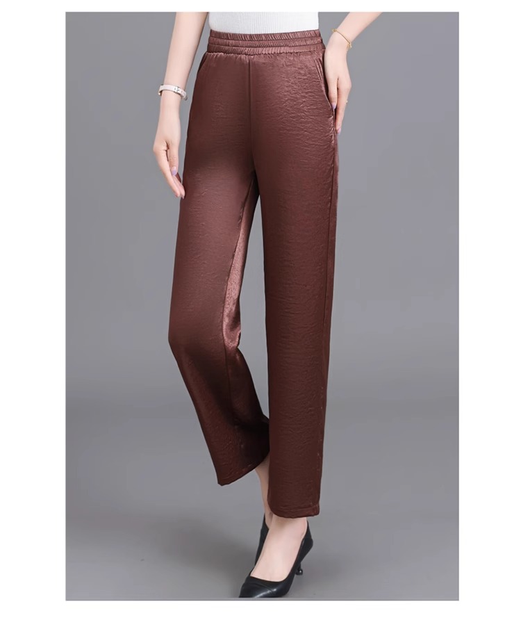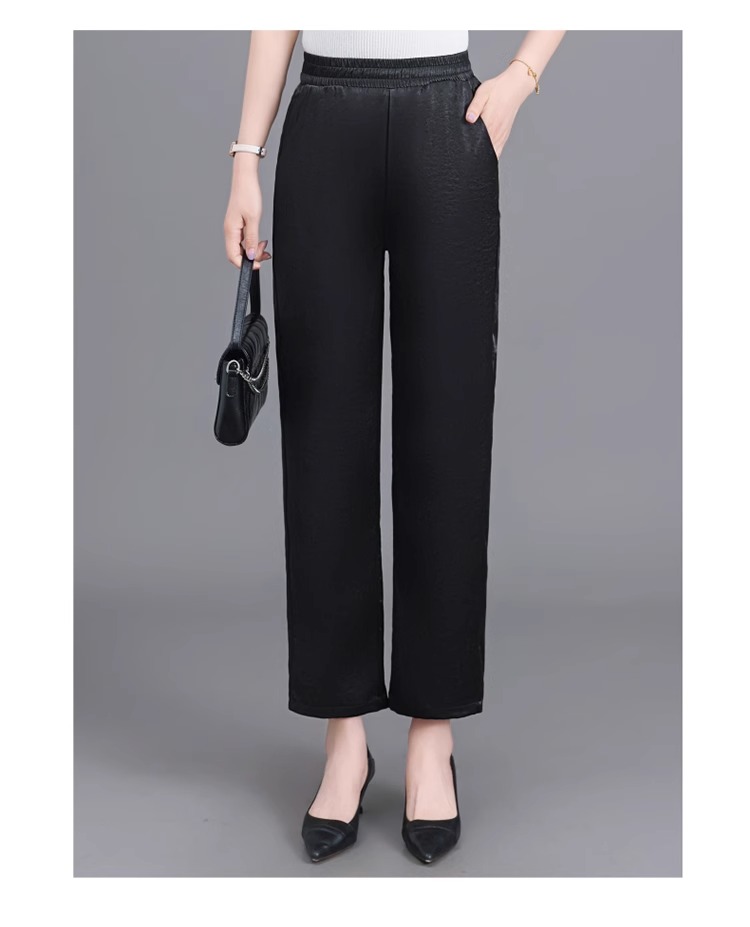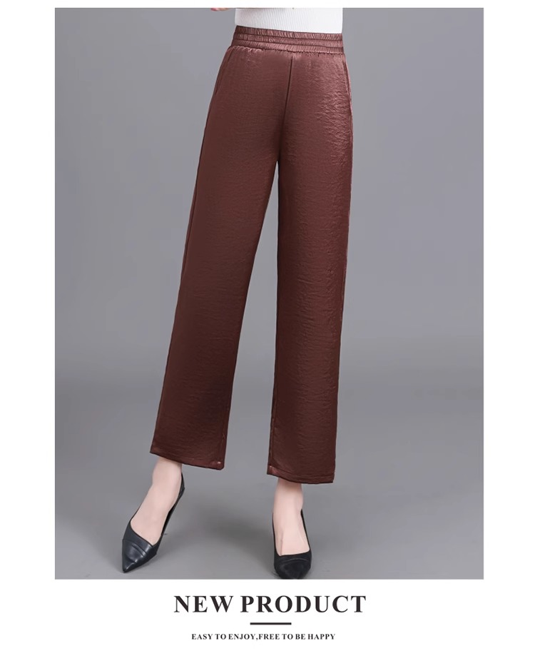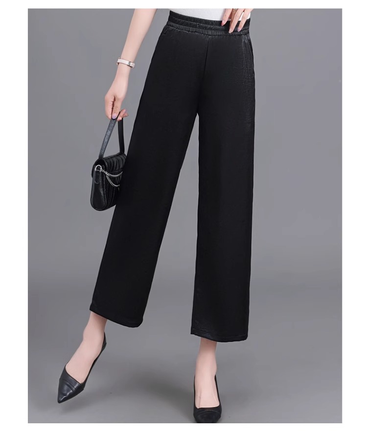 杭州重磅真絲休閒褲夏季薄款醋酸九分濶腿褲中老年桑蠶絲高腰長褲