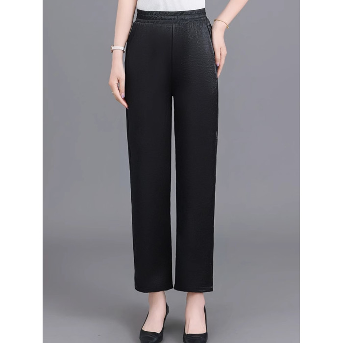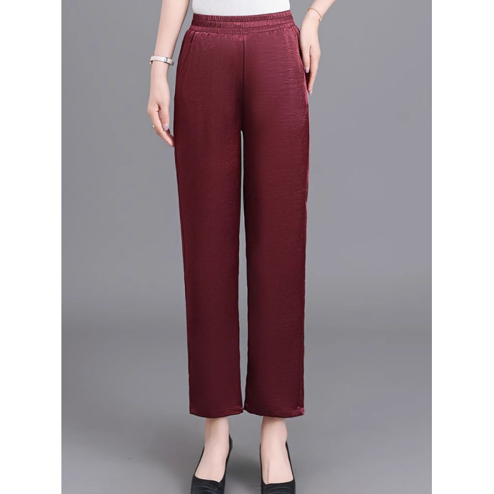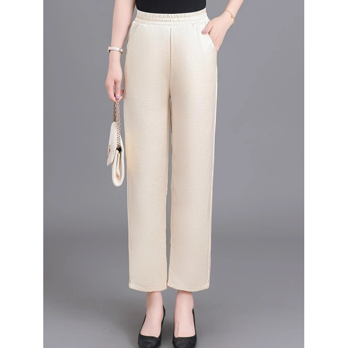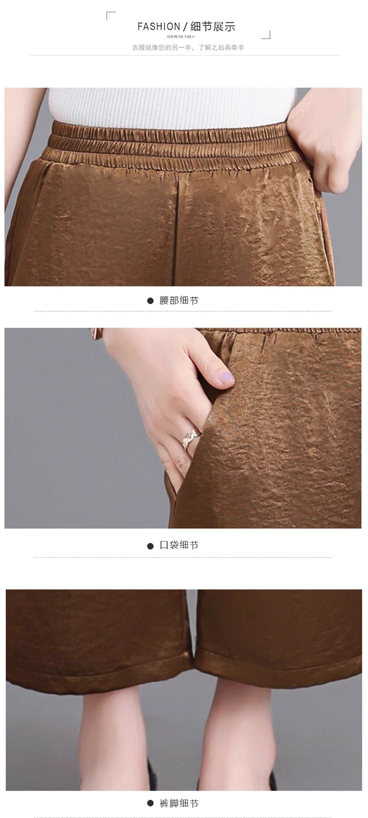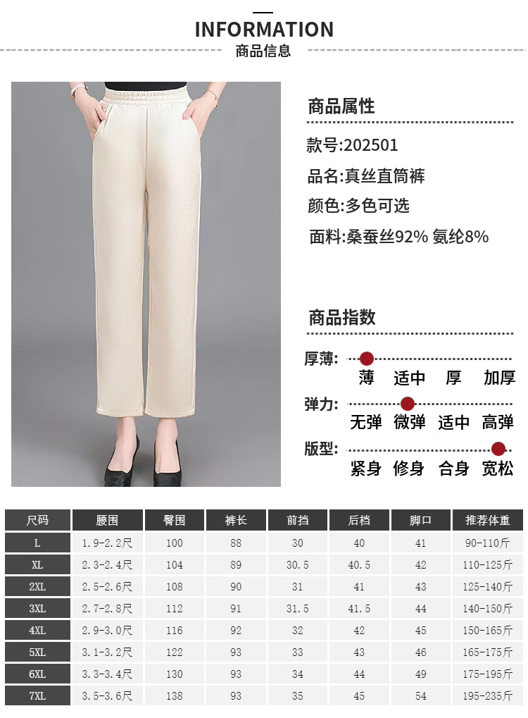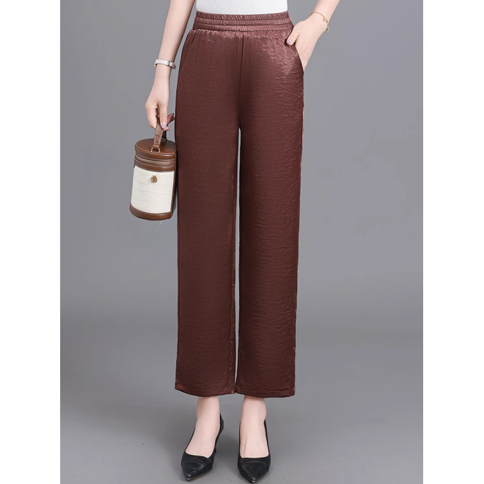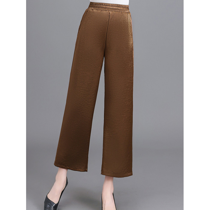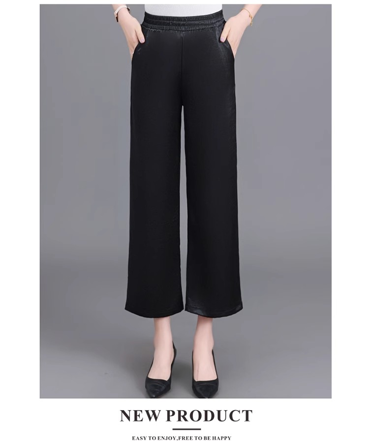 杭州重磅真絲休閒褲夏季薄款醋酸九分濶腿褲中老年桑蠶絲高腰長褲
