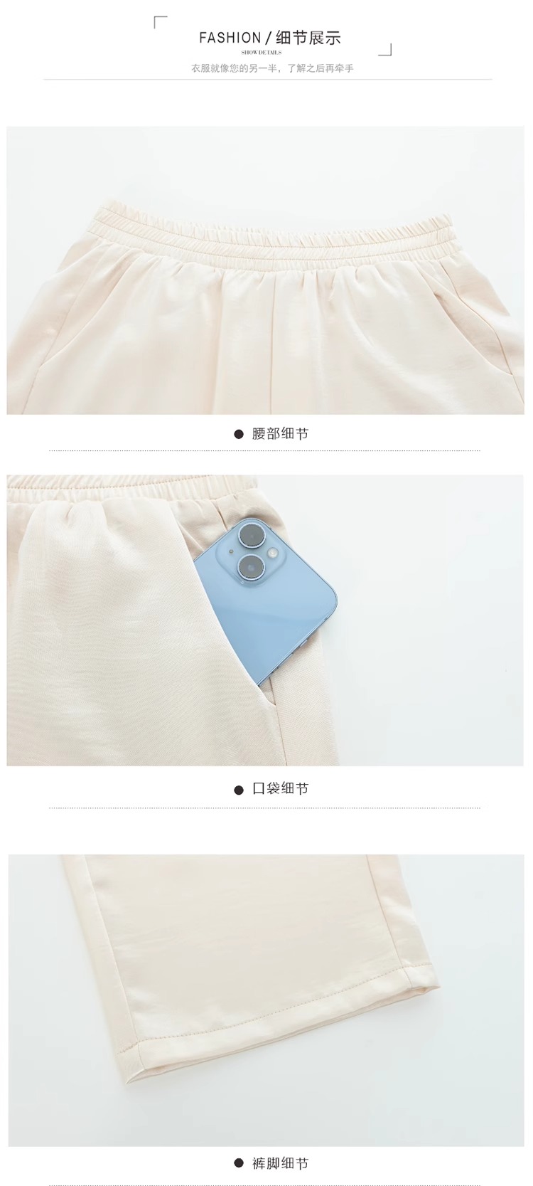 米白色【九分濶腿褲】
