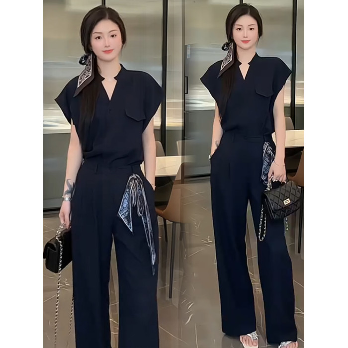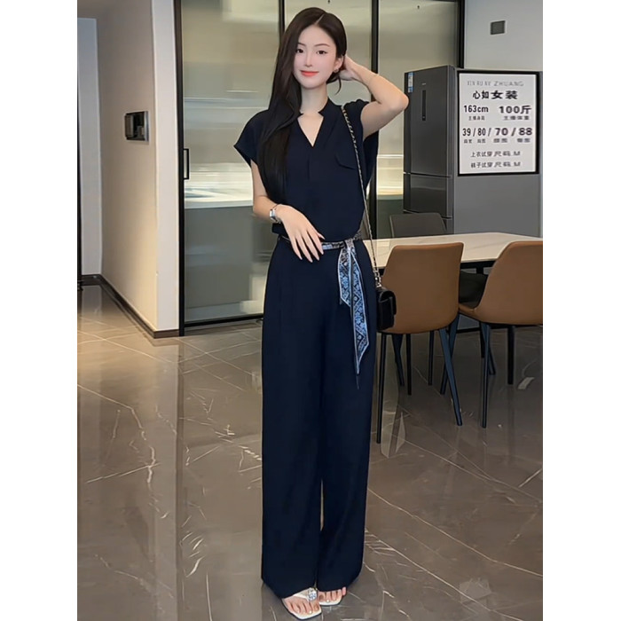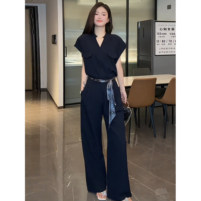 時尚連體衣套裝女2025夏季新款時髦氣質收腰顯瘦垂感濶腿連體褲潮