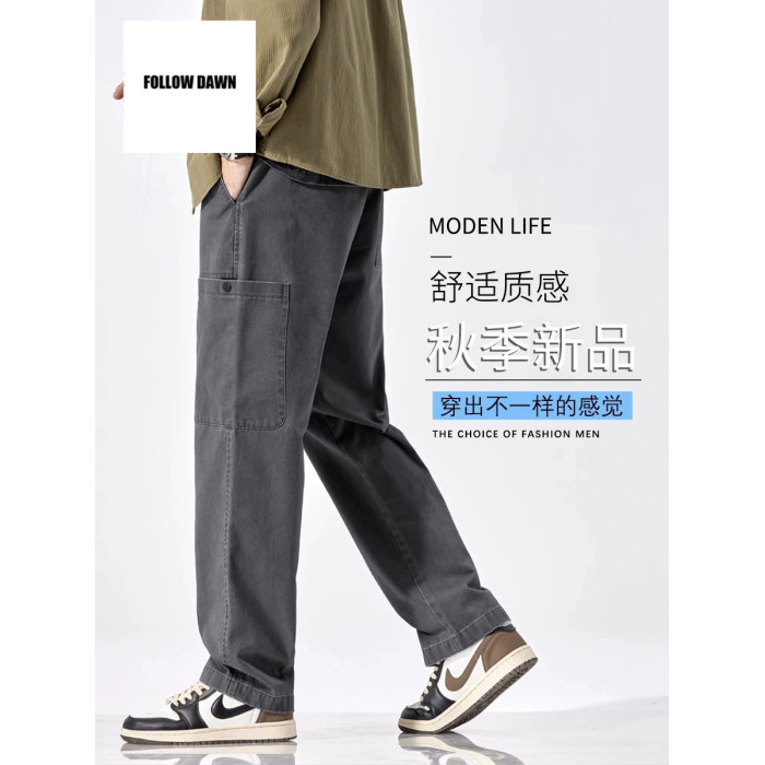 工裝濶腿褲男生春秋季新款潮牌寬松直筒垂感純棉休閒長褲